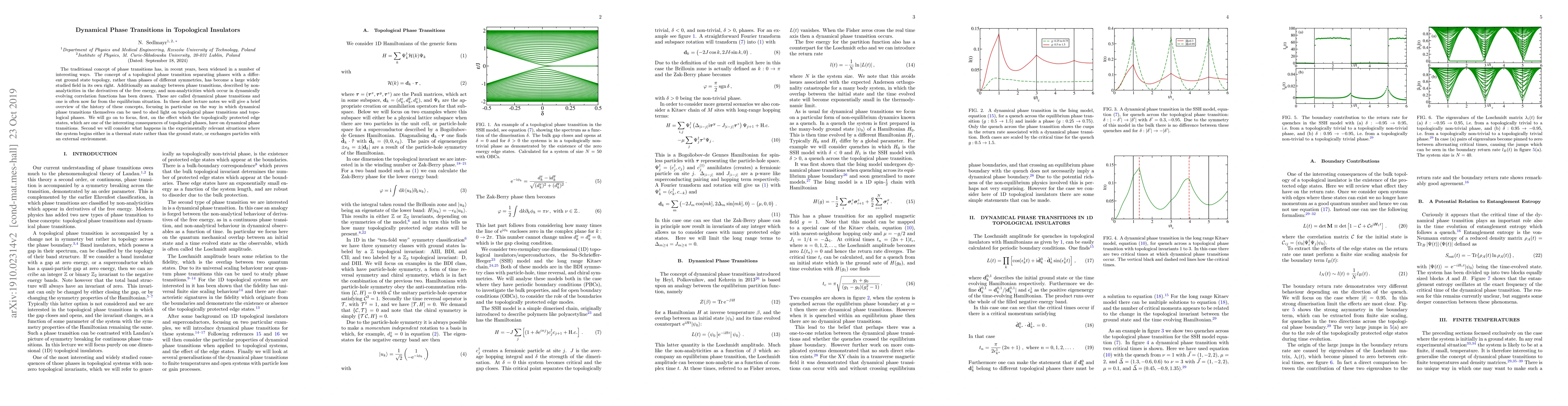 This paper reviews the concept of dynamical phase transitions, especially in topological insulators, where these transitions illuminate topological phase transitions and the effects of topologically protected edge states. It also examines how thermal states and particle exchange with an external environment influence these transitions.