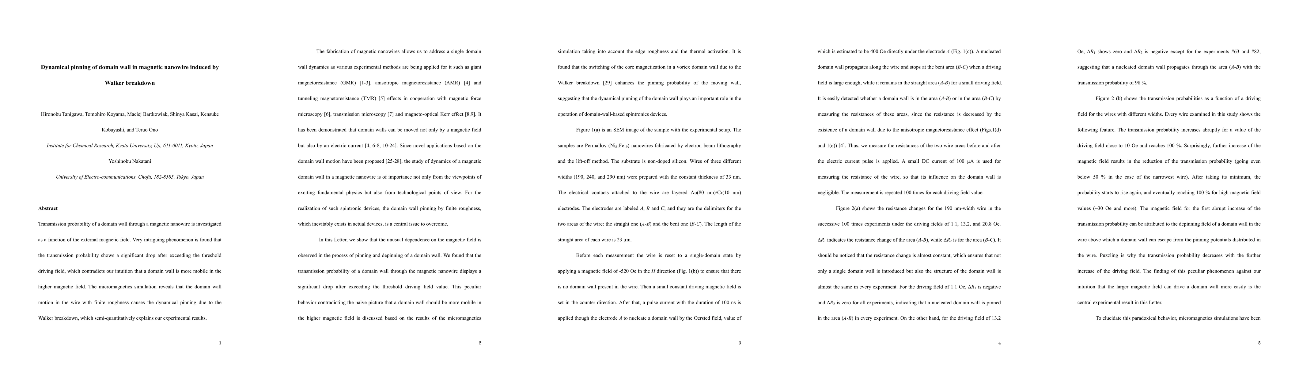 This research investigates how the transmission of a domain wall in a magnetic nanowire decreases after exceeding a certain external magnetic field, contrary to typical expectations. Micromagnetic simulations attribute this phenomenon to dynamical pinning caused by Walker breakdown due to the wire's roughness.