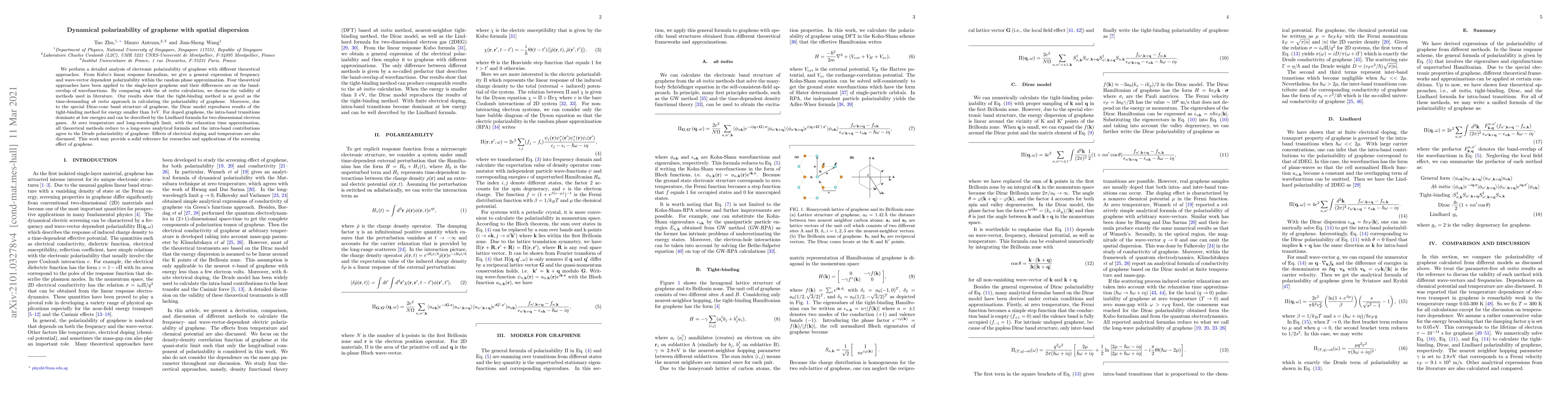 This paper analyzes the electronic polarizability of graphene using four theoretical approaches, comparing their results with \textit{ab initio} calculations. The tight-binding method is found to be as effective as \textit{ab initio} for graphene polarizability, while the Dirac model aligns with tight-binding for energies below \SI{3}{\electronvolt}. The study also addresses the effects of doping and temperature on graphene's polarizability.