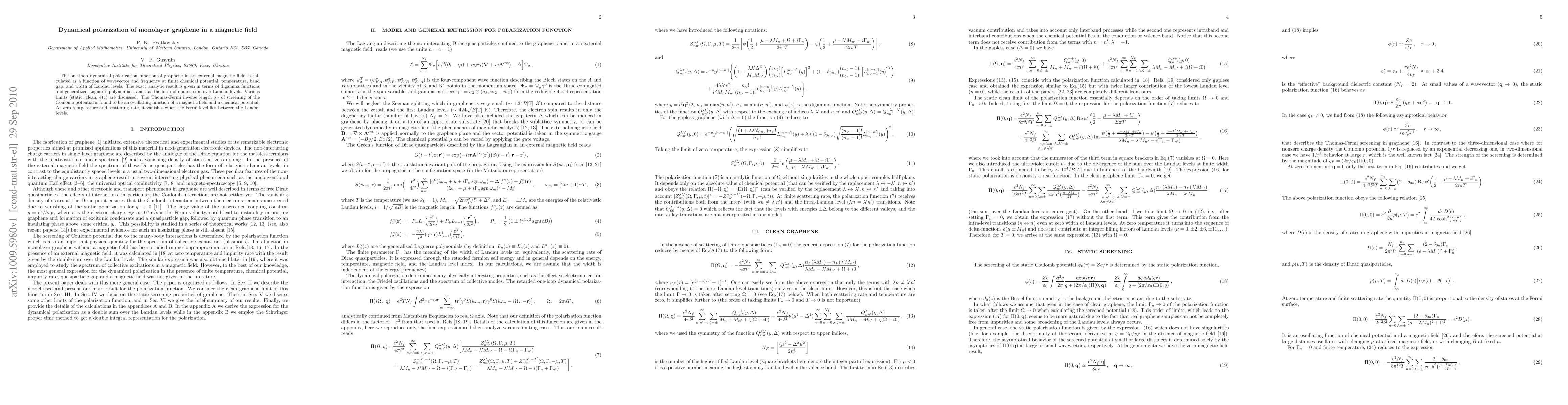 Researchers calculated the dynamical polarization function of monolayer graphene in a magnetic field, finding that it oscillates with a magnetic field strength and chemical potential, and vanishes at zero temperature when the Fermi level lies between Landau levels.