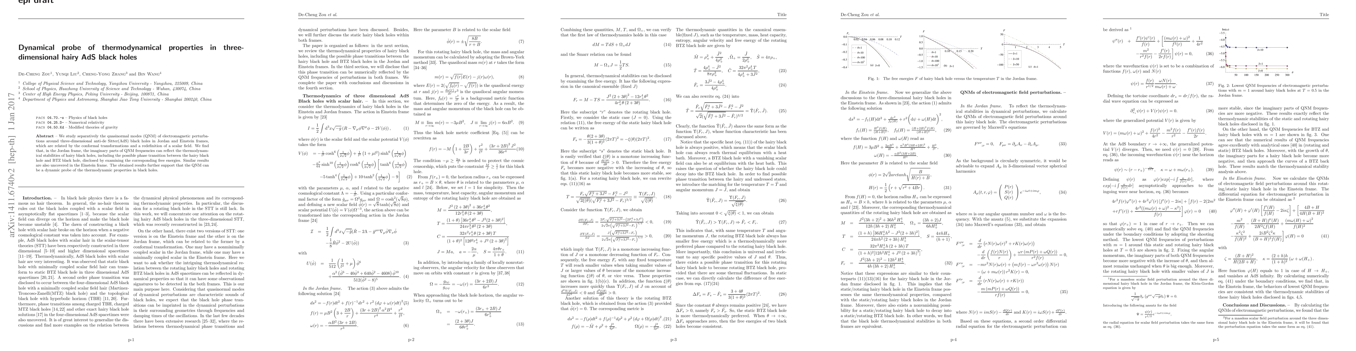 We study separatively the quasinormal modes (QNM) of electromagnetic perturbations around three-dimensional anti-de Sitter(AdS) black holes in Jordan and Einstein frames, which are related by the conformal transformations and a redefinition of a scalar field. We find that, in the Jordan frame, the imaginary parts of QNM frequencies can reflect the thermodynamical stabilities of hairy black holes, including the possible phase transition between the hairy black hole and BTZ black hole, disclosed by examining the corresponding free energies. Similar results are also uncovered in the Einstein frame. The obtained results further support that the QNM can be a dynamic probe of the thermodynamic properties in black holes.
