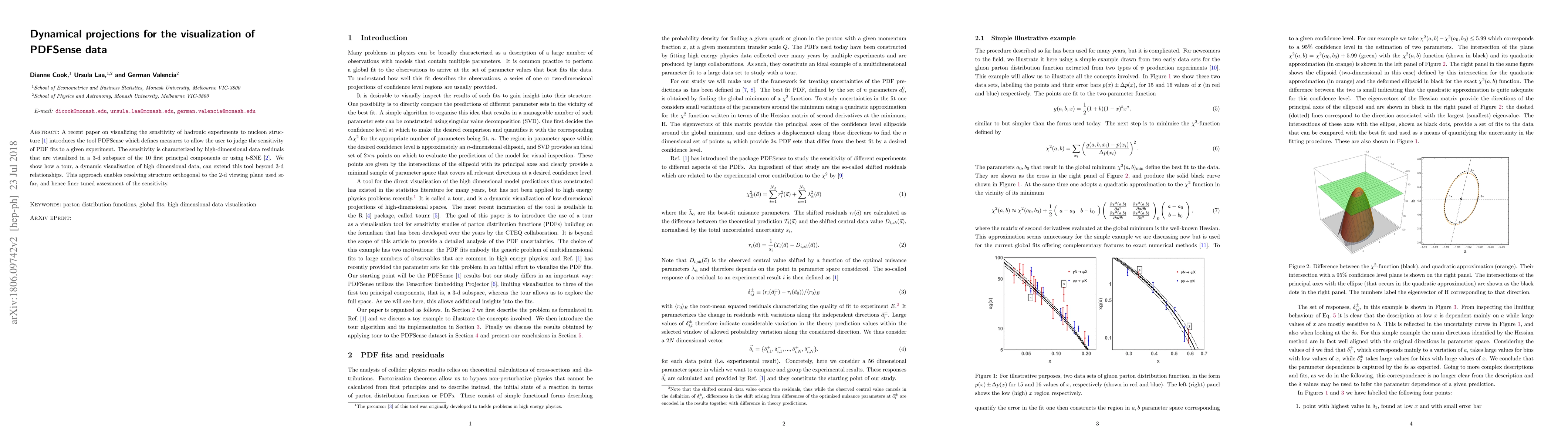 A recent paper on visualizing the sensitivity of hadronic experiments to nucleon structure [1] introduces the tool PDFSense which defines measures to allow the user to judge the sensitivity of PDF fits to a given experiment. The sensitivity is characterized by high-dimensional data residuals that are visualized in a 3-d subspace of the 10 first principal components or using t-SNE [2]. We show how a tour, a dynamic visualisation of high dimensional data, can extend this tool beyond 3-d relationships. This approach enables resolving structure orthogonal to the 2-d viewing plane used so far, and hence finer tuned assessment of the sensitivity.
