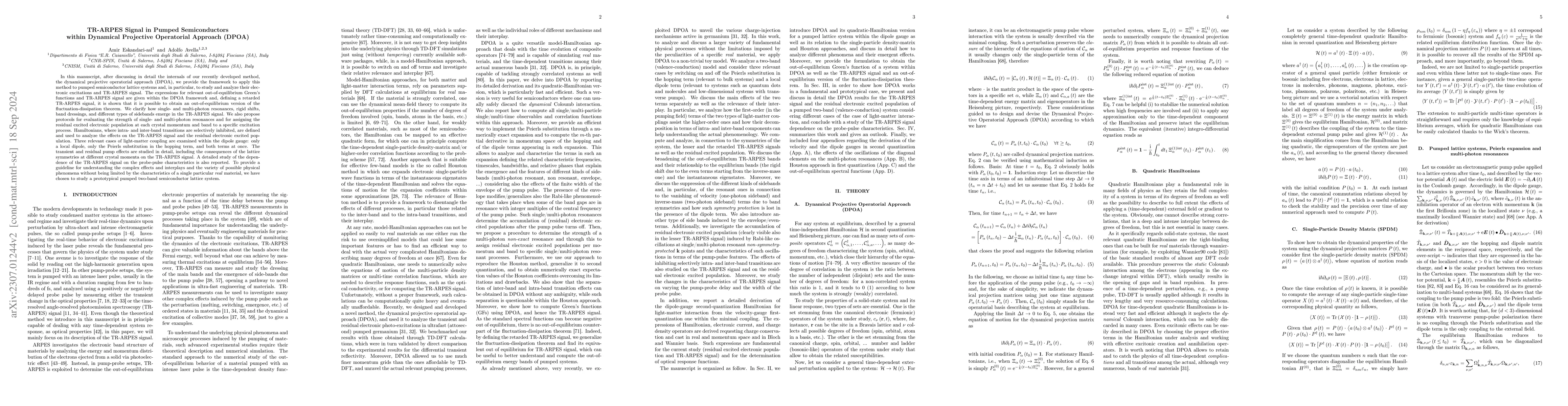 The paper introduces the Dynamical Projective Operatorial Approach (DPOA) to efficiently simulate out-of-equilibrium systems under time-dependent fields, particularly for computing TR-ARPES signals. DPOA leverages many-body formalism, composite operators, and a Peierls expansion to handle complex real materials and pump-probe spectroscopies, offering significant improvements over existing methods in terms of efficiency and accuracy.