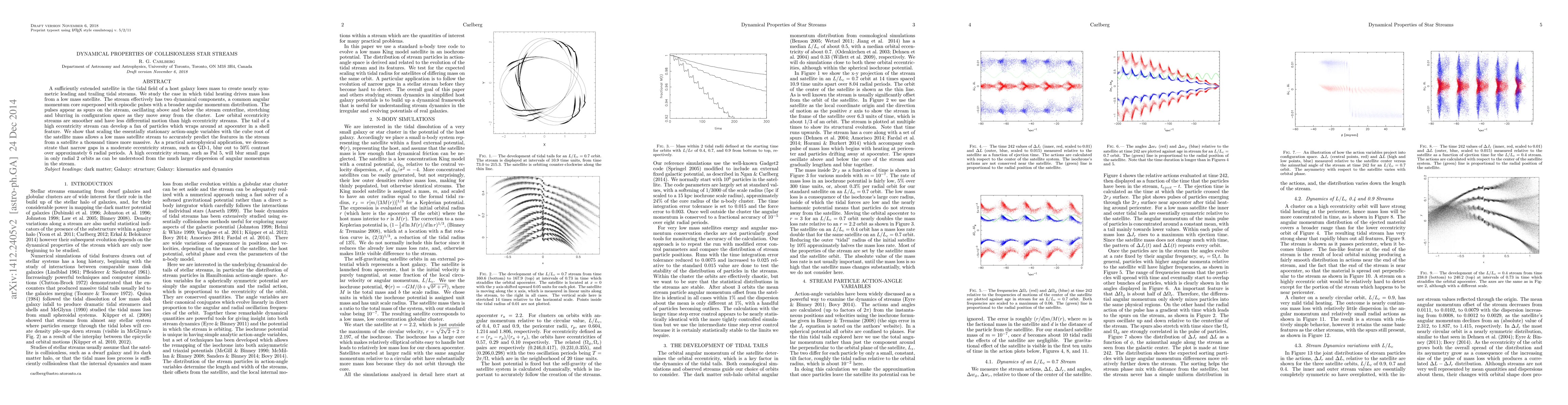 A sufficiently extended satellite in the tidal field of a host galaxy loses mass to create nearly symmetric leading and trailing tidal streams. We study the case in which tidal heating drives mass loss from a low mass satellite. The stream effectively has two dynamical components, a common angular momentum core superposed with episodic pulses with a broader angular momentum distribution. The pulses appear as spurs on the stream, oscillating above and below the stream centerline, stretching and blurring in configuration space as they move away from the cluster. Low orbital eccentricity streams are smoother and have less differential motion than high eccentricity streams. The tail of a high eccentricity stream can develop a fan of particles which wraps around at apocenter in a shell feature. We show that scaling the essentially stationary action-angle variables with the cube root of the satellite mass allows a low mass satellite stream to accurately predict the features in the stream from a satellite a thousand times more massive. As a practical astrophysical application, we demonstrate that narrow gaps in a moderate eccentricity stream, such as GD-1, blur out to 50\% contrast over approximately 6 radial periods. A high eccentricity stream, such as Pal~5, will blur small gaps in only radial 2 orbits as can be understood from the much larger dispersion of angular momentum in the stream.