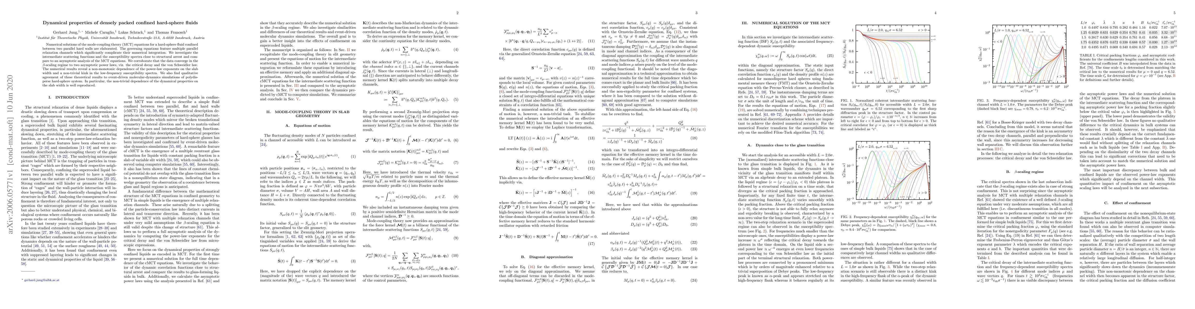 This research paper details numerical solutions of the mode-coupling theory equations for a hard-sphere fluid trapped between two walls. Key findings include the identification of multiple relaxation channels complicating numerical integration, convergence of data to critical decay and von Schweidler power laws in the $eta$-scaling regime, and non-monotonic dependence of power-law exponents on slab width. The study also reveals a kink in low-frequency susceptibility spectra and corroboration with event-driven molecular-dynamics simulations of polydisperse hard-sphere systems, particularly in dynamical properties' non-trivial dependence on slab width.