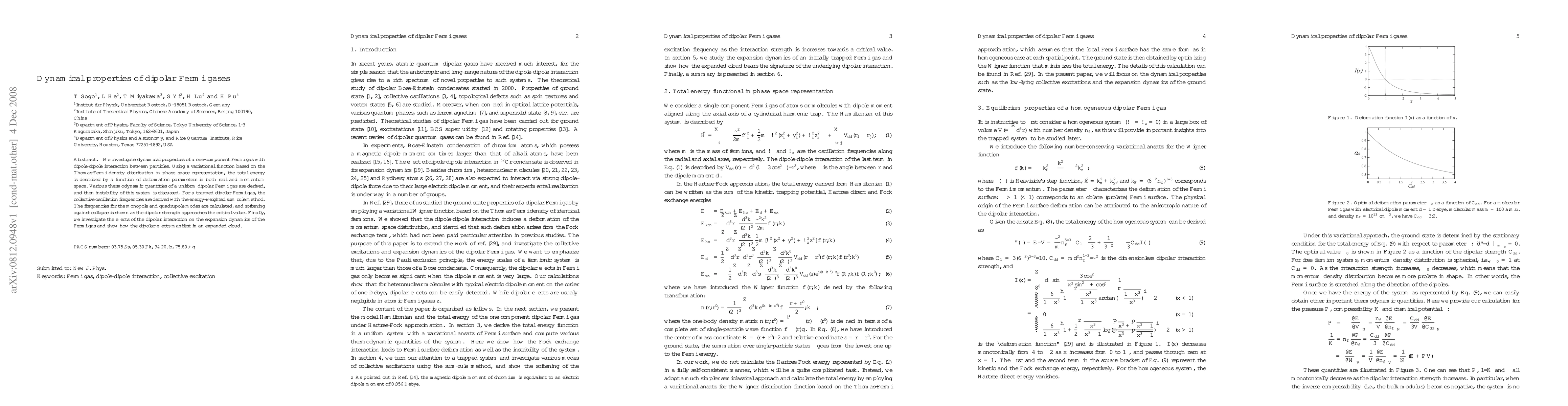 This paper examines the dynamical properties of a dipolar Fermi gas, deriving thermodynamic quantities and collective oscillation frequencies using a variational approach. It highlights the system's instability and softening of oscillation modes near the critical dipolar strength, and discusses the impact of dipolar interactions on the gas's expansion dynamics.