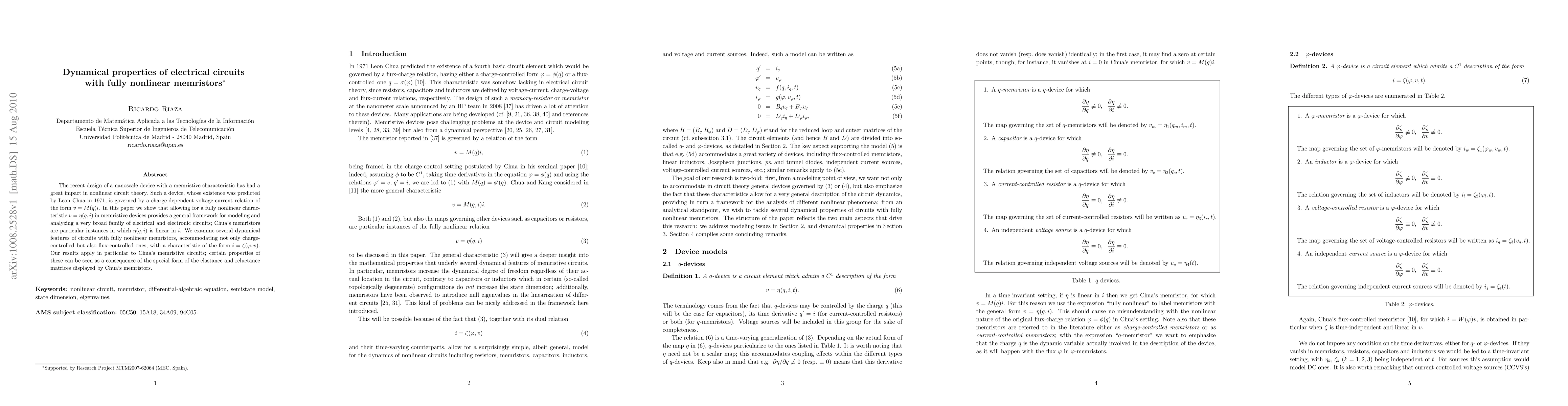 This paper explores the dynamical properties of electrical circuits incorporating fully nonlinear memristors, extending beyond Chua's linear memristors. It provides a general framework for analyzing a wide range of circuits, highlighting unique dynamical features and applicability to both charge-controlled and flux-controlled memristors.