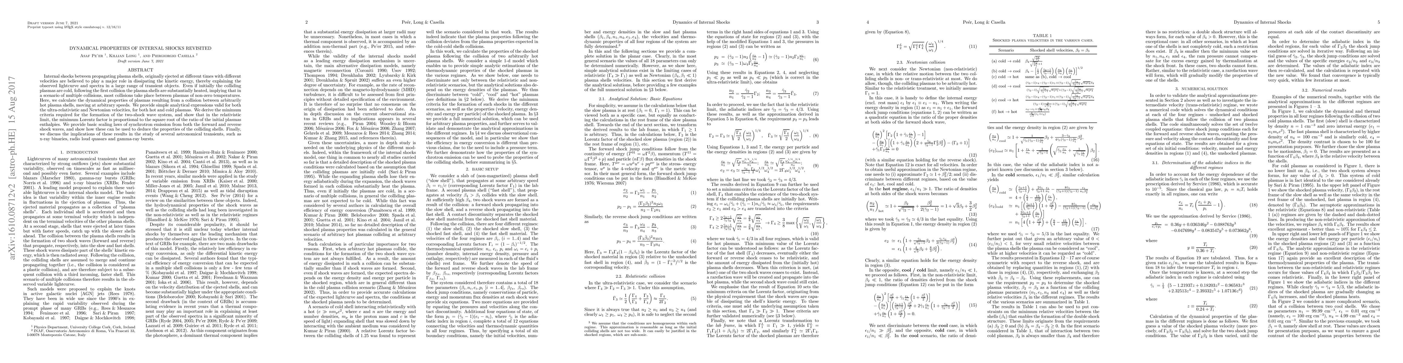 Internal shocks between propagating plasma shells, originally ejected at different times with different velocities are believed to play a major role in dissipating the kinetic energy, thereby explaining the observed lightcurve and spectra in a large range of transient objects. Even if initially the colliding plasmas are cold, following the first collision the plasma shells are substantially heated, implying that in a scenario of multiple collisions, most collisions take place between plasmas of non-zero temperatures. Here, we calculate the dynamical properties of plasmas resulting from collision between arbitrarily hot plasma shells, moving at arbitrary speeds. We provide simple analytical expressions valid for both the ultra-relativistic and Newtonian velocities, for both hot and cold plasmas. We derive the minimum criteria required for the formation of the two-shock wave system, and show that in the relativistic limit, the minimum Lorentz factor is proportional to the square root of the ratio of the initial plasmas enthalpies. We provide basic scaling laws of synchrotron emission from both the forward and reverse shock waves, and show how these can be used to deduce the properties of the colliding shells. Finally, we discuss the implications of these results in the study of several astronomical transients, such as x-ray binaries, radio load quasars and gamma-ray bursts.