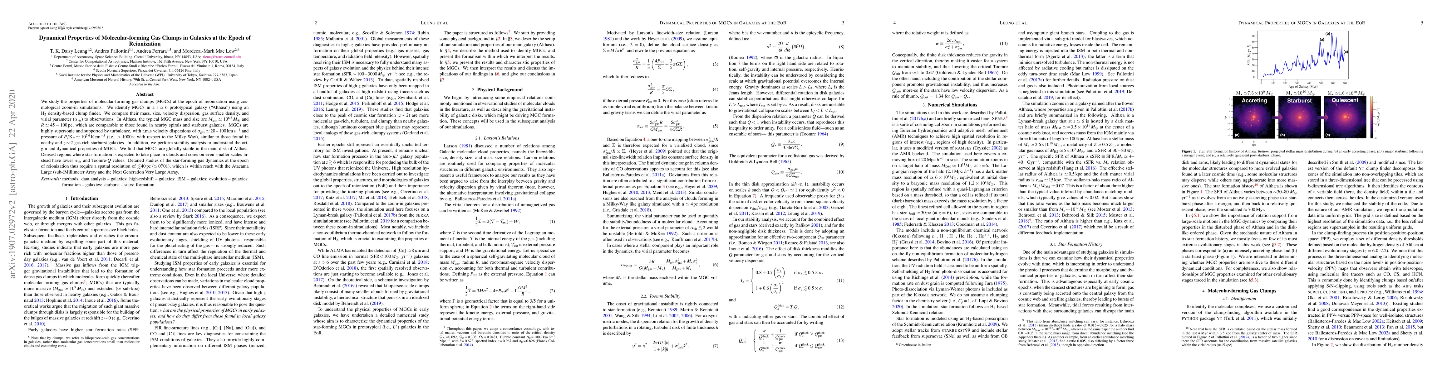 This study investigates the dynamical properties of molecular-forming gas clumps (MGCs) in a z=6 galaxy using cosmological simulations. MGCs in the galaxy "Althaea" are found to be highly supersonic, turbulent, and globally stable, with characteristics comparable to those in nearby starburst galaxies.