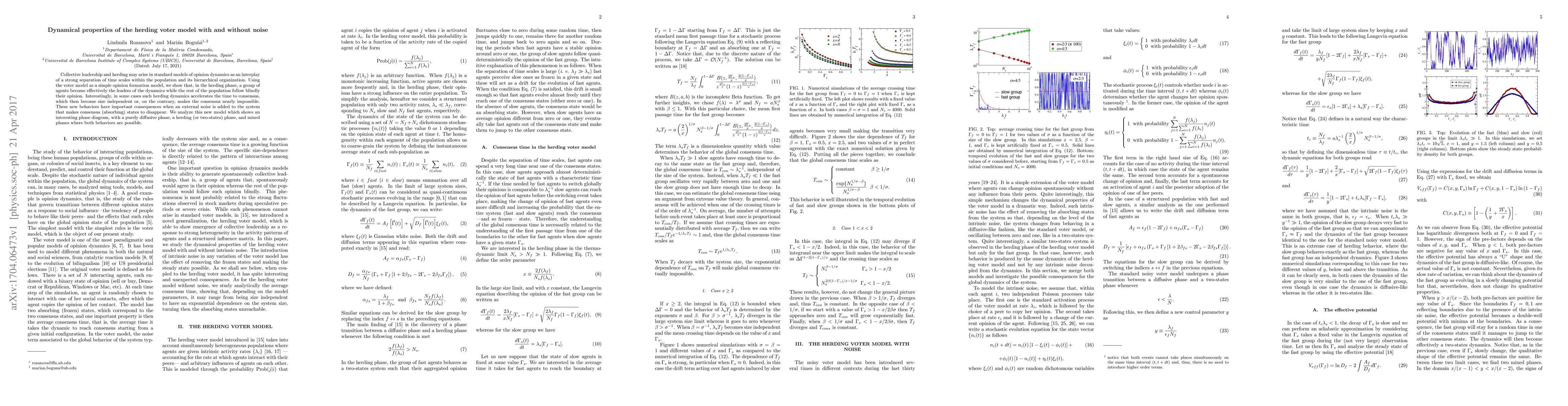 Collective leadership and herding may arise in standard models of opinion dynamics as an interplay of a strong separation of time scales within the population and its hierarchical organization. Using the voter model as a simple opinion formation model, we show that, in the herding phase, a group of agents become effectively the leaders of the dynamics while the rest of the population follow blindly their opinion. Interestingly, in some cases such herding dynamics accelerates the time to consensus, which then become size independent or, on the contrary, makes the consensus nearly impossible. These new behaviors have important consequences when an external noise is added to the system that makes consensus (absorbing) states to disappear. We analyze this new model which shows an interesting phase diagram, with a purely diffusive phase, a herding (or two-states) phase, and mixed phases where both behaviors are possible.