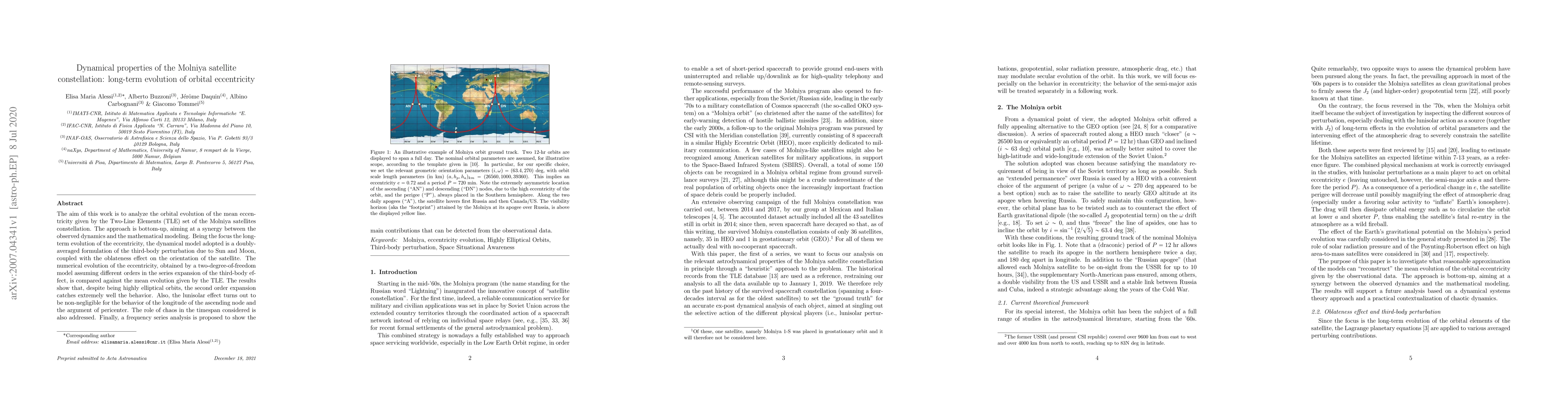 This paper analyzes the long-term evolution of orbital eccentricity in the Molniya satellite constellation using a doubly-averaged dynamical model for third-body perturbations and oblateness effects. The second-order expansion model closely matches observed dynamics, highlighting the significant influence of lunisolar perturbations on orbital elements.