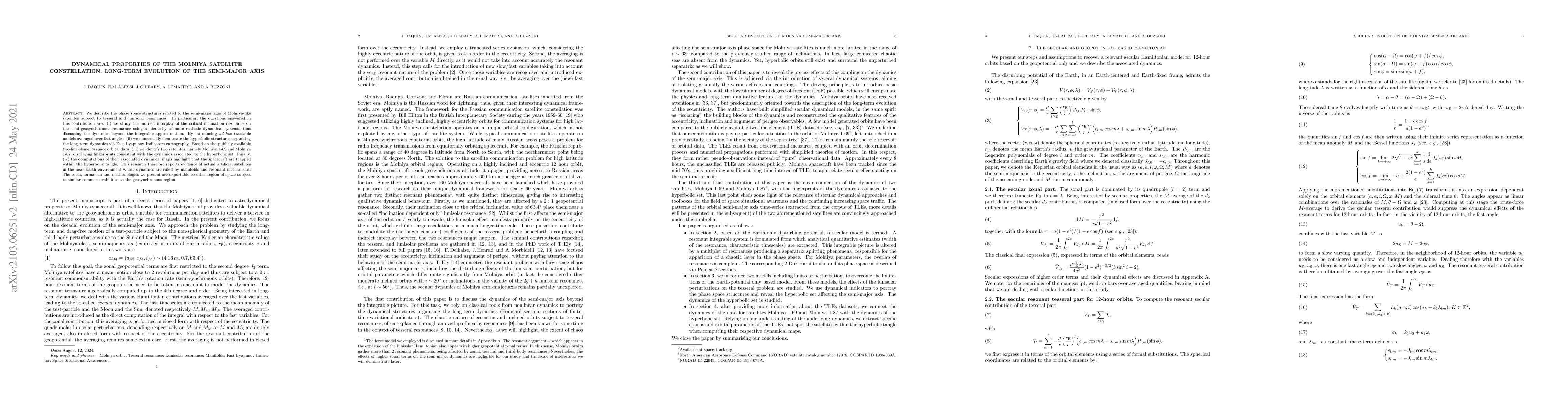 This paper investigates the long-term dynamical evolution of the semi-major axis in Molniya-like satellites, revealing the influence of tesseral and lunisolar resonances. It identifies two specific satellites, Molniya 1-69 and Molniya 1-87, whose orbits are governed by hyperbolic structures and resonant mechanisms, demonstrating the applicability of these findings to other regions of space.