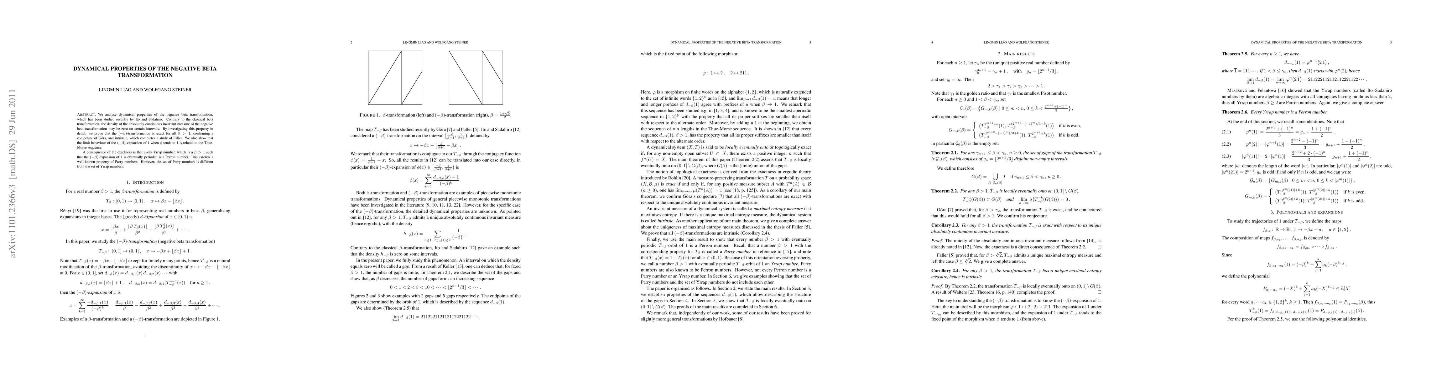 This paper investigates the dynamical properties of the negative beta transformation, proving its exactness for all $\beta>1$ and showing its intrinsic nature. It also links the limit behavior of the $(-\beta)$-expansion of 1 to the Thue-Morse sequence, and establishes that Yrrap numbers, a subset of $\beta>1$ with eventually periodic $(-\beta)$-expansions, are a subset of Perron numbers.
