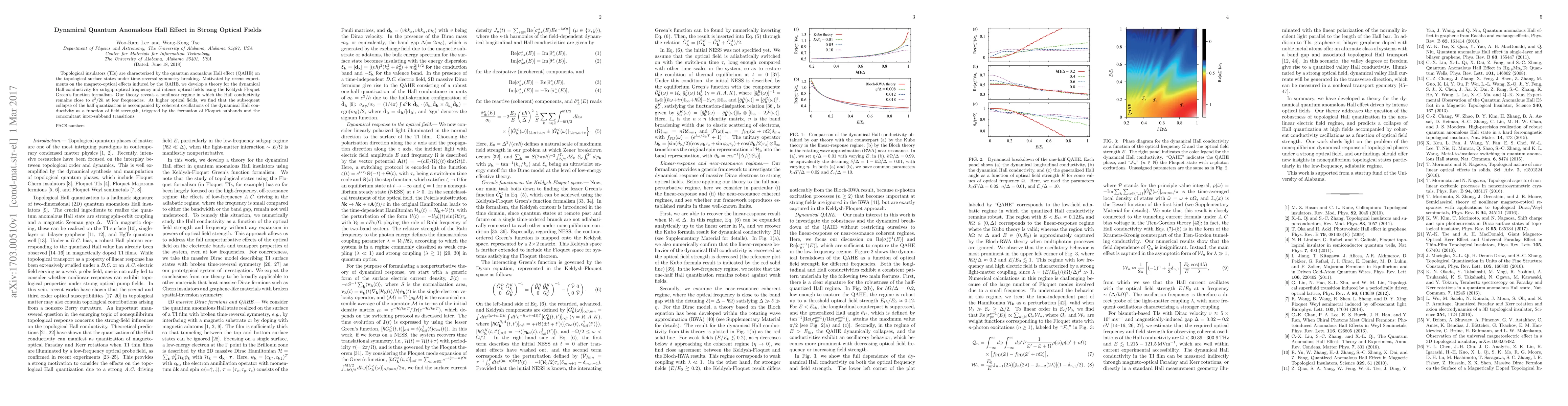 Topological insulators (TIs) are characterized by the quantum anomalous Hall effect (QAHE) on the topological surface states under time-reversal symmetry breaking. Motivated by recent experiments on the magneto-optical effects induced by the QAHE, we develop a theory for the dynamical Hall conductivity for subgap optical frequency and intense optical fields using the Keldysh-Floquet Green's function formalism. Our theory reveals a nonlinear regime in which the Hall conductivity remains close to $e^2/2h$ at low frequencies. At higher optical fields, we find that the subsequent collapse of the half quantization is accompanied by coherent oscillations of the dynamical Hall conductivity as a function of field strength, triggered by the formation of Floquet subbands and the concomitant inter-subband transitions.