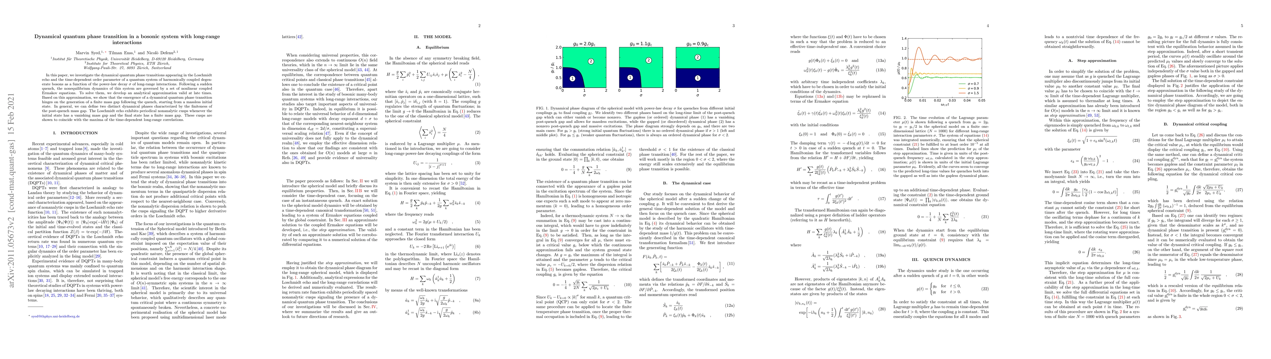 In this paper, we investigate the dynamical quantum phase transitions appearing in the Loschmidt echo and the time-dependent order parameter of a quantum system of harmonically coupled degenerate bosons as a function of the power-law decay $\sigma$ of long-range interactions. Following a sudden quench, the nonequilibrium dynamics of this system are governed by a set of nonlinear coupled Ermakov equations. To solve them, we develop an analytical approximation valid at late times. Based on this approximation, we show that the emergence of a dynamical quantum phase transition hinges on the generation of a finite mass gap following the quench, starting from a massless initial state. In general, we can define two distinct dynamical phases characterized by the finiteness of the post-quench mass gap. The Loschmidt echo exhibits periodical nonanalytic cusps whenever the initial state has a vanishing mass gap and the final state has a finite mass gap. These cusps are shown to coincide with the maxima of the time-dependent long-range correlations.