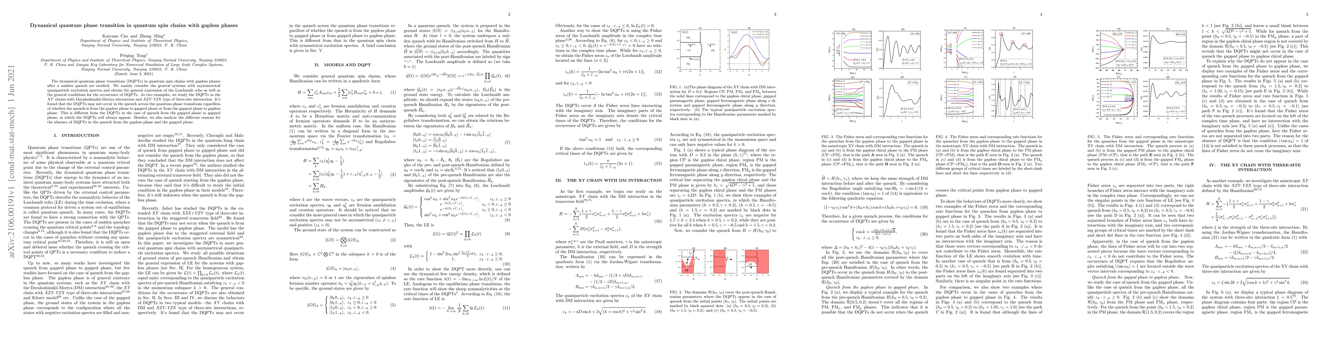 The dynamical quantum phase transitions (DQPTs) in quantum spin chains with gapless phases after a sudden quench are studied. We mainly consider the general systems with asymmetrical quasiparticle excitation spectra and obtain the general expression of the Loschmidt echo as well as the general conditions for the occurrence of DQPTs. As two examples, we study the DQPTs in the \emph{XY} chains with Dzyaloshinskii-Moriya interaction and \emph{XZY-YZX} type of three-site interaction. It's found that the DQPTs may not occur in the quench across the quantum phase transitions regardless of whether the quench is from the gapless phase to gapped phase or from the gapped phase to gapless phase. This is different from the DQPTs in the case of quench from the gapped phase to gapped phase, in which the DQPTs will always appear. Besides, we also analyze the different reasons for the absence of DQPTs in the quench from the gapless phase and the gapped phase.