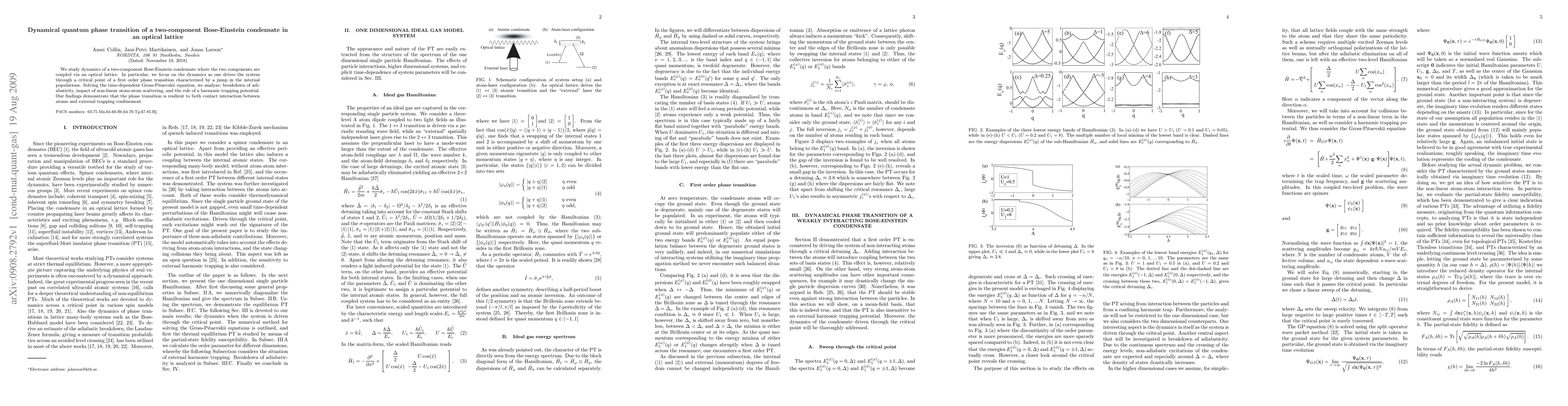 We study dynamics of a two-component Bose-Einstein condensate where the two components are coupled via an optical lattice. In particular, we focus on the dynamics as one drives the system through a critical point of a first order phase transition characterized by a jump in the internal populations. Solving the time-dependent Gross-Pitaevskii equation, we analyze; breakdown of adiabaticity, impact of non-linear atom-atom scattering, and the role of a harmonic trapping potential. Our findings demonstrate that the phase transition is resilient to both contact interaction between atoms and external trapping confinement.