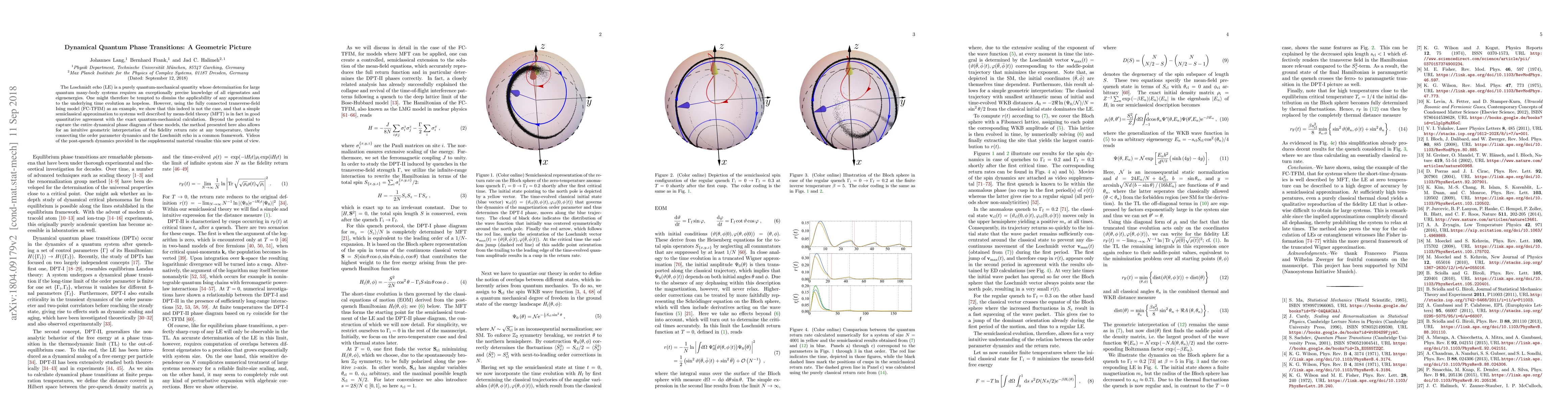 The Loschmidt echo (LE) is a purely quantum-mechanical quantity whose determination for large quantum many-body systems requires an exceptionally precise knowledge of all eigenstates and eigenenergies. One might therefore be tempted to dismiss the applicability of any approximations to the underlying time evolution as hopeless. However, using the fully connected transverse-field Ising model (FC-TFIM) as an example, we show that this indeed is not the case, and that a simple semiclassical approximation to systems well described by mean-field theory (MFT) is in fact in good quantitative agreement with the exact quantum-mechanical calculation. Beyond the potential to capture the entire dynamical phase diagram of these models, the method presented here also allows for an intuitive geometric interpretation of the fidelity return rate at any temperature, thereby connecting the order parameter dynamics and the Loschmidt echo in a common framework. Videos of the post-quench dynamics provided in the supplemental material visualize this new point of view.