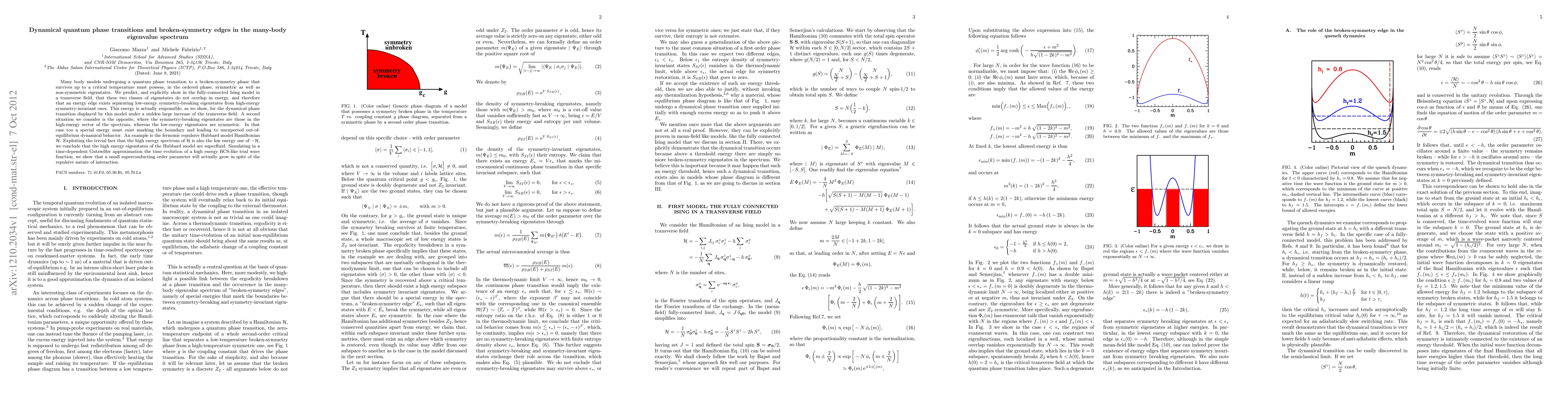 Many body models undergoing a quantum phase transition to a broken-symmetry phase that survives up to a critical temperature must possess, in the ordered phase, symmetric as well as non-symmetric eigenstates. We predict, and explicitly show in the fully-connected Ising model in a transverse field, that these two classes of eigenstates do not overlap in energy, and therefore that an energy edge exists separating low-energy symmetry-breaking eigenstates from high-energy symmetry-invariant ones. This energy is actually responsible, as we show, for the dynamical phase transition displayed by this model under a sudden large increase of the transverse field. A second situation we consider is the opposite, where the symmetry-breaking eigenstates are those in the high-energy sector of the spectrum, whereas the low-energy eigenstates are symmetric. In that case too a special energy must exist marking the boundary and leading to unexpected out-of-equilibrium dynamical behavior. An example is the fermionic repulsive Hubbard model Hamiltonian H. Exploiting the trivial fact that the high energy spectrum of H is also the low energy one of -H, we conclude that the high energy eigenstates of the Hubbard model are superfluid. Simulating in a time-dependent Gutzwiller approximation the time evolution of a high energy BCS-like trial wave function, we show that a small superconducting order parameter will actually grow in spite of the repulsive nature of interaction.