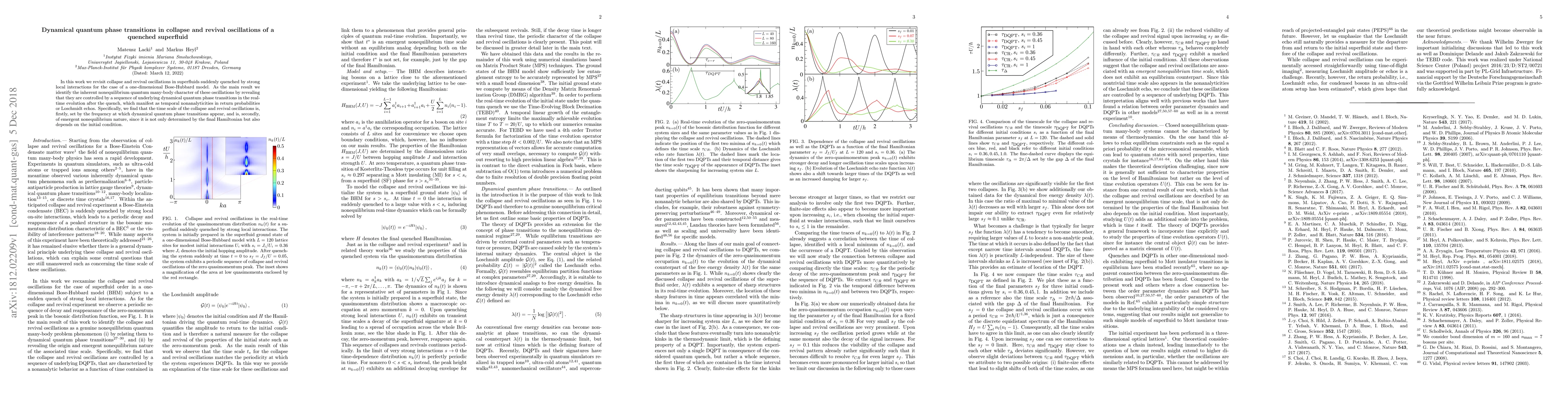 In this work we revisit collapse and revival oscillations in superfluids suddenly quenched by strong local interactions for the case of a one-dimensional Bose-Hubbard model. As the main result we identify the inherent nonequilibrium quantum many-body character of these oscillations by revealing that they are controlled by a sequence of underlying dynamical quantum phase transitions in the real-time evolution after the quench, which manifest as temporal nonanalyticities in return probabilities or Loschmidt echos. Specifically, we find that the time scale of the collapse and revival oscillations is, firstly, set by the frequency at which dynamical quantum phase transitions appear, and is, secondly, of emergent nonequilibrium nature, since it is not only determined by the final Hamiltonian but also depends on the initial condition.