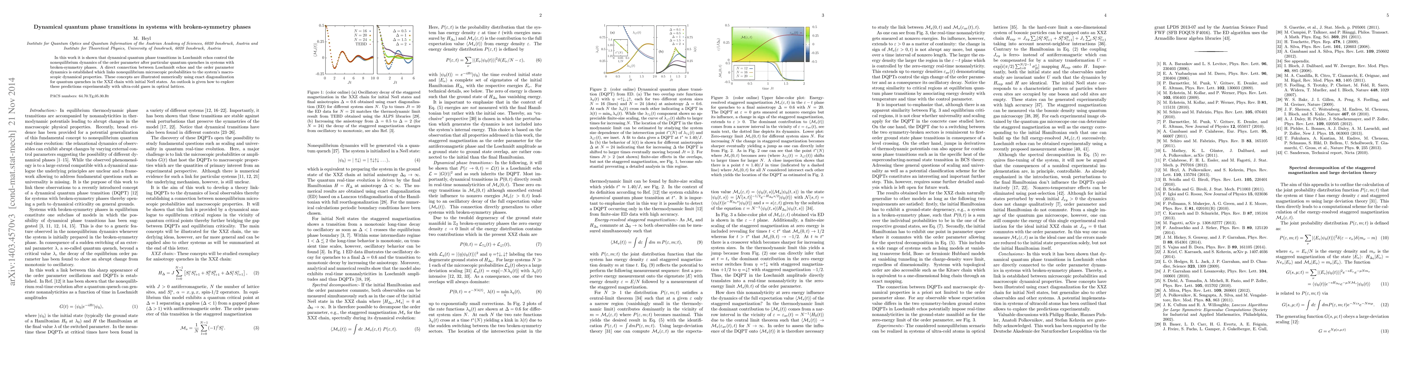 This paper demonstrates that dynamical quantum phase transitions, as measured by Loschmidt echos, govern the nonequilibrium dynamics of order parameters following specific quantum quenches in systems with broken-symmetry phases. The study establishes a direct link between Loschmidt echos and order parameter dynamics, illustrating these concepts numerically using the XXZ chain and suggesting potential experimental explorations with ultra-cold gases in optical lattices.
