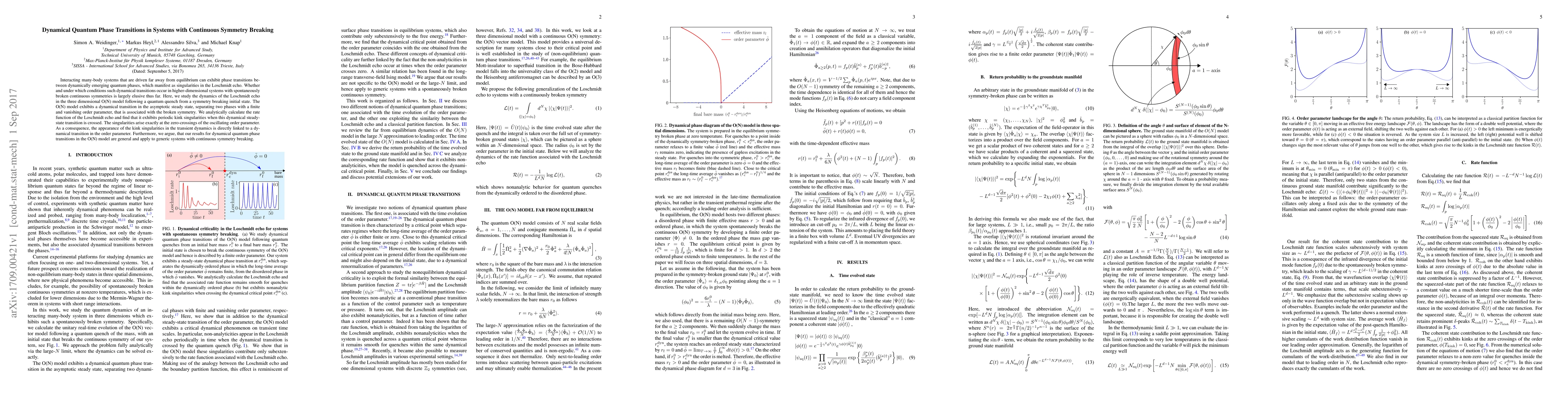 This paper investigates dynamical quantum phase transitions in the three-dimensional O(N) model following a quantum quench, revealing a transition in the asymptotic steady state linked to the broken symmetry. The study finds periodic kink singularities in the Loschmidt echo, directly tied to zero-crossings in the oscillating order parameter, suggesting these transitions are generalizable to systems with continuous symmetry breaking.
