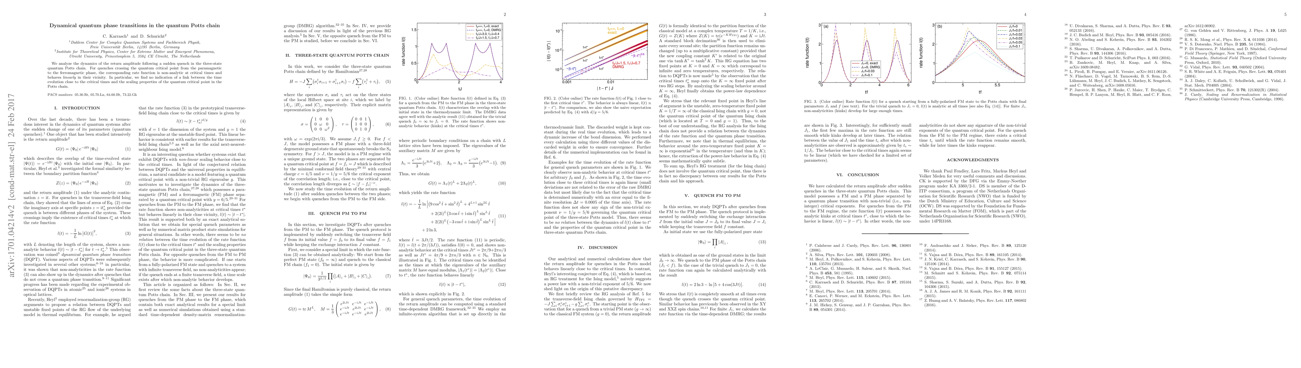 We analyze the dynamics of the return amplitude following a sudden quench in the three-state quantum Potts chain. For quenches crossing the quantum critical point from the paramagnetic to the ferromagnetic phase, the corresponding rate function is non-analytic at critical times and behaves linearly in their vicinity. In particular, we find no indication of a link between the time evolution close to the critical times and the scaling properties of the quantum critical point in the Potts chain.