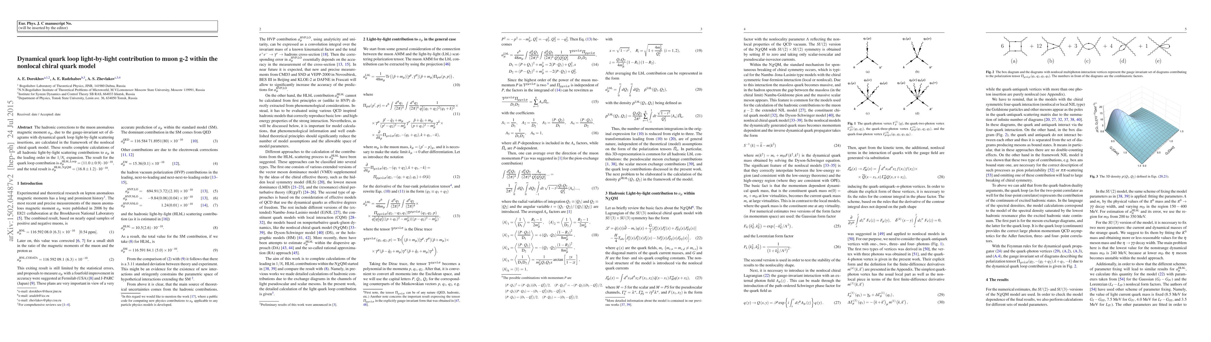 This paper calculates the dynamical quark loop light-by-light contribution to the muon anomalous magnetic moment (a_mu) using the nonlocal chiral quark model, completing the leading order hadronic light-by-light scattering contributions. The result for the quark loop contribution is a_mu^{HLbL,Loop}=(11.0+-0.9)*10^(-10).