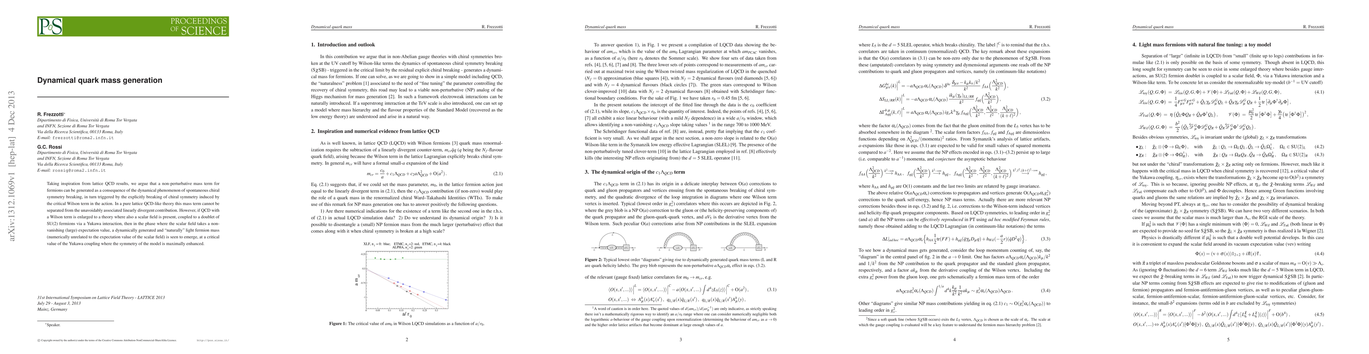 Taking inspiration from lattice QCD results, we argue that a non-perturbative mass term for fermions can be generated as a consequence of the dynamical phenomenon of spontaneous chiral symmetry breaking, in turn triggered by the explicitly breaking of chiral symmetry induced by the critical Wilson term in the action. In a pure lattice QCD-like theory this mass term cannot be separated from the unavoidably associated linearly divergent contribution. However, if QCD with a Wilson term is enlarged to a theory where also a scalar field is present, coupled to a doublet of SU(2) fermions via a Yukawa interaction, then in the phase where the scalar field takes a non-vanishing (large) expectation value, a dynamically generated and ``naturally'' light fermion mass (numerically unrelated to the expectation value of the scalar field) is seen to emerge, at a critical value of the Yukawa coupling where the symmetry of the model is maximally enhanced.