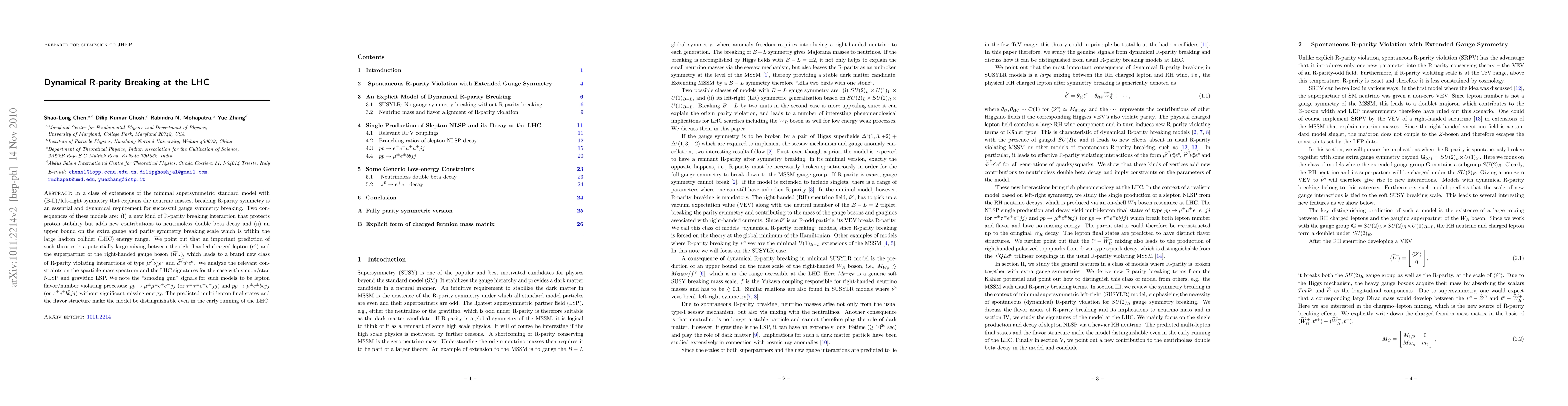 This paper explores dynamical R-parity breaking in supersymmetric models with (B-L)/left-right symmetry, predicting new R-parity violating interactions and multi-lepton final states at the LHC. Key signatures include lepton flavor/number violating processes such as $pp\to \mu^\pm\mu^\pm e^+e^-jj$ and $pp\to\mu^\pm e^\pm b \bar{b} jj$, distinguishable from early LHC data.