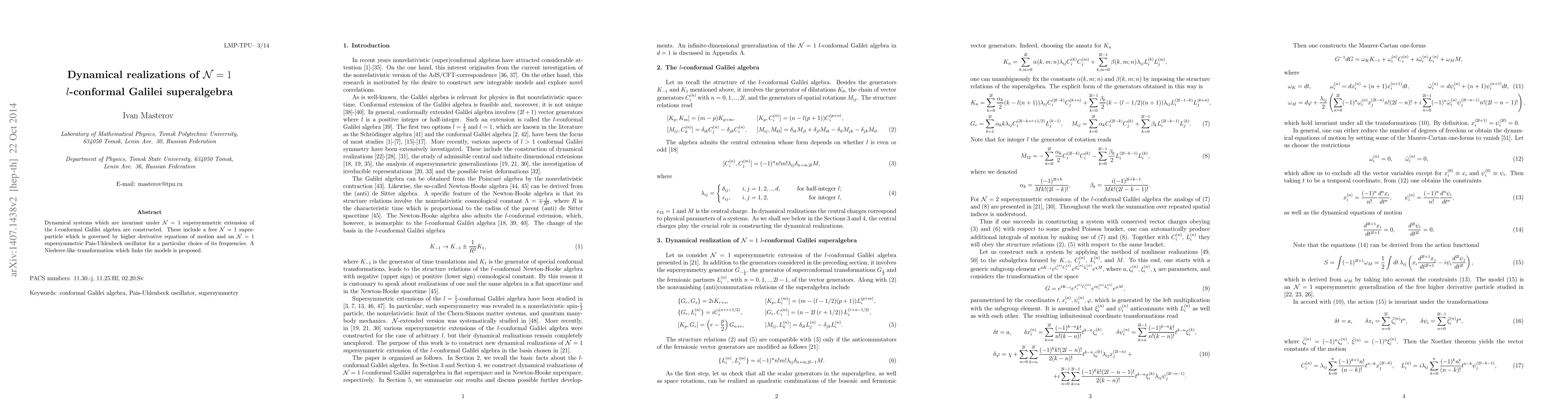 This paper constructs dynamical systems invariant under an N=1 supersymmetric extension of the l-conformal Galilei algebra, including a free N=1 superparticle and a supersymmetric Pais-Uhlenbeck oscillator, and proposes a Niederer-like transformation linking these models.