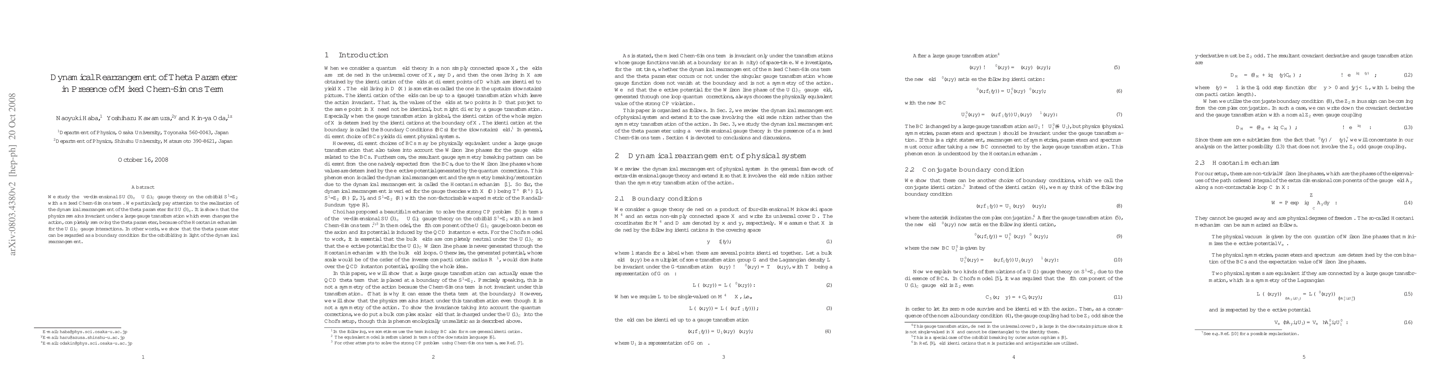 We study the five-dimensional SU(3)_c x U(1)_C gauge theory on the orbifold S^1/Z_2 with a mixed Chern-Simons term. We particularly pay attention to the realization of the dynamical rearrangement of the theta parameter for SU(3)_c. It is shown that the physics remains invariant under a large gauge transformation which even changes the action, completely removing the theta parameter, because of the Hosotani mechanism for the U(1)_C gauge interactions. In other words, we show that the theta parameter can be regarded as a boundary condition for the orbifolding in light of the dynamical rearrangement.