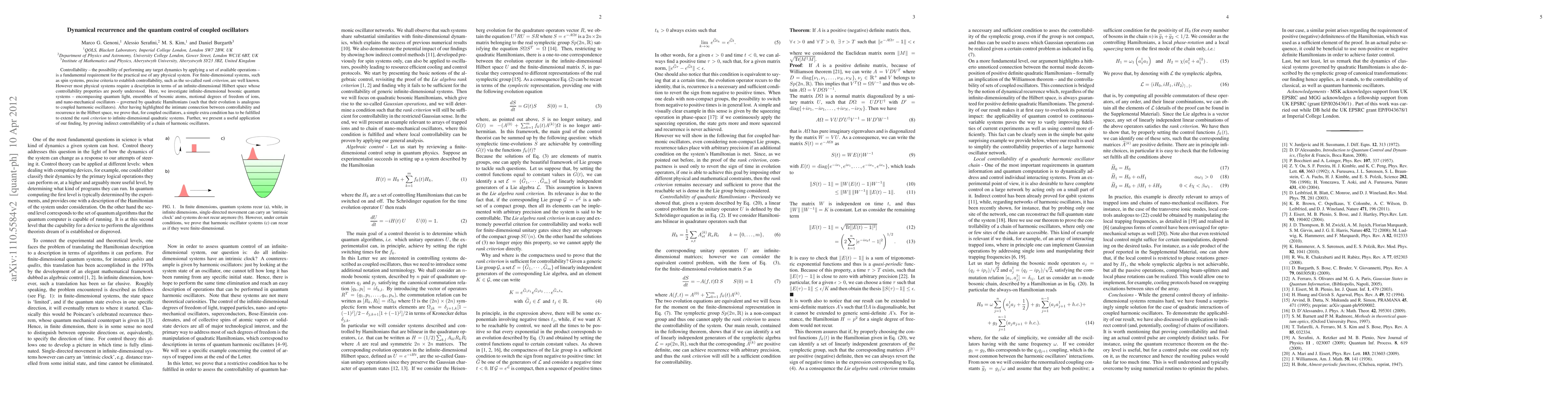 This paper explores the controllability of infinite-dimensional bosonic quantum systems, demonstrating a connection between controllability and recurrence in the Hilbert space. It extends the rank criterion to these systems and proves indirect controllability for a chain of harmonic oscillators.