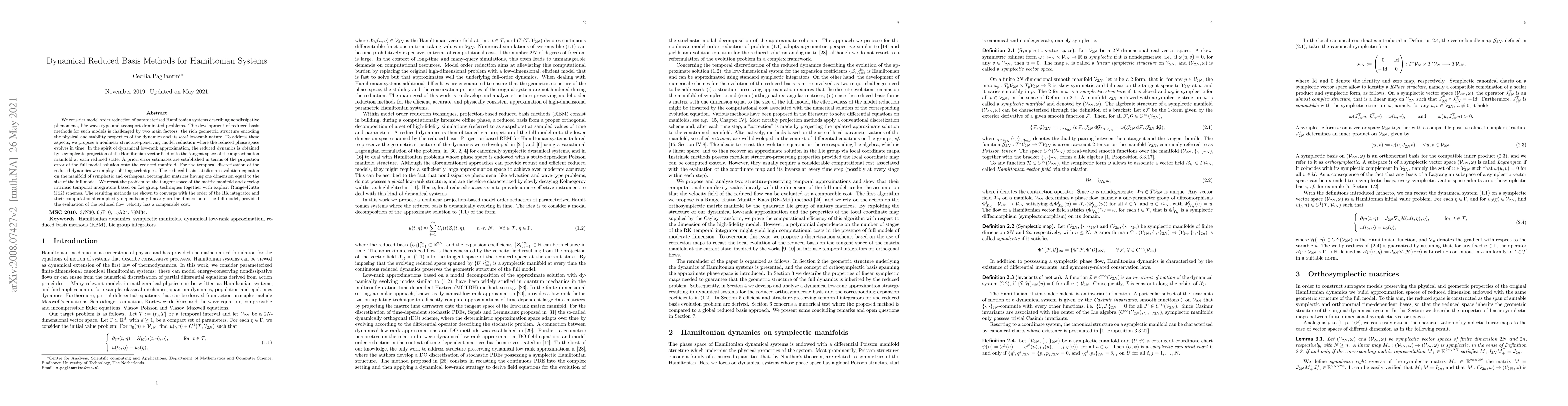 We consider model order reduction of parameterized Hamiltonian systems describing nondissipative phenomena, like wave-type and transport dominated problems. The development of reduced basis methods for such models is challenged by two main factors: the rich geometric structure encoding the physical and stability properties of the dynamics and its local low-rank nature. To address these aspects, we propose a nonlinear structure-preserving model reduction where the reduced phase space evolves in time. In the spirit of dynamical low-rank approximation, the reduced dynamics is obtained by a symplectic projection of the Hamiltonian vector field onto the tangent space of the approximation manifold at each reduced state. A priori error estimates are established in terms of the projection error of the full model solution onto the reduced manifold. For the temporal discretization of the reduced dynamics we employ splitting techniques. The reduced basis satisfies an evolution equation on the manifold of symplectic and orthogonal rectangular matrices having one dimension equal to the size of the full model. We recast the problem on the tangent space of the matrix manifold and develop intrinsic temporal integrators based on Lie group techniques together with explicit Runge-Kutta (RK) schemes. The resulting methods are shown to converge with the order of the RK integrator and their computational complexity depends only linearly on the dimension of the full model, provided the evaluation of the reduced flow velocity has a comparable cost.