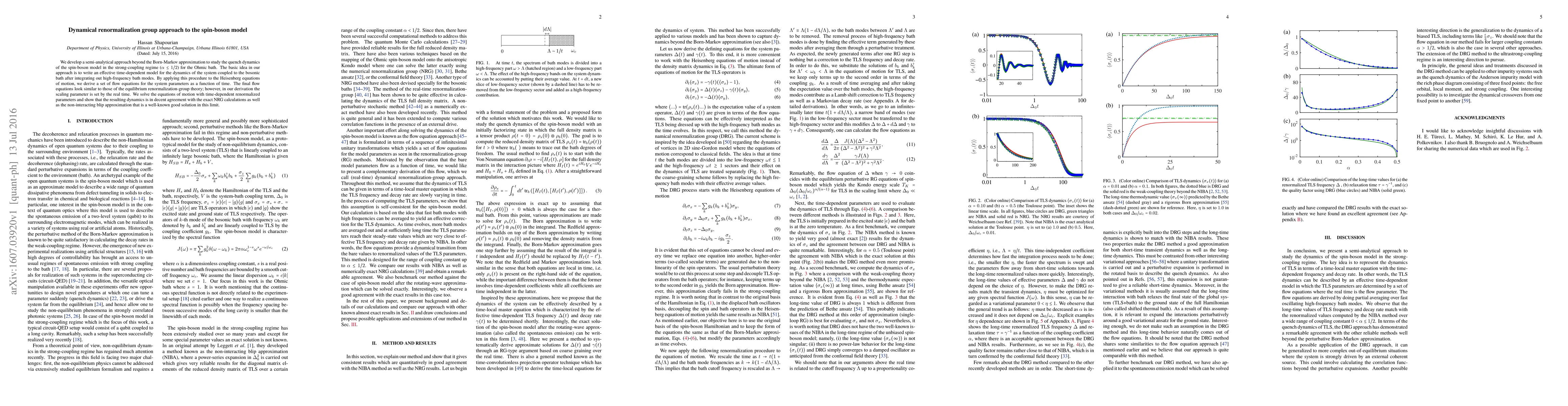 This paper develops a semi-analytical method for studying the quench dynamics of the spin-boson model in the strong-coupling regime using a dynamical renormalization group approach. The results show good agreement with exact calculations and known approximations.