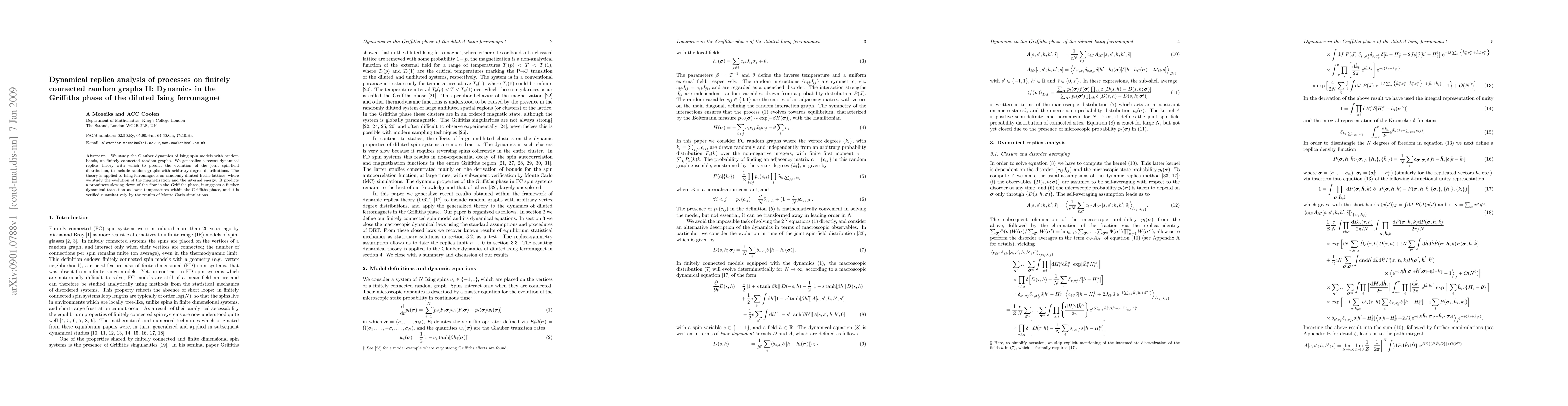 This paper extends dynamical replica theory to study the Glauber dynamics of Ising spin models on finitely connected random graphs, predicting a slowing down in the Griffiths phase and a further dynamical transition, verified by Monte Carlo simulations. The theory is applied to diluted Ising ferromagnets on Bethe lattices, revealing insights into magnetization and internal energy evolution.