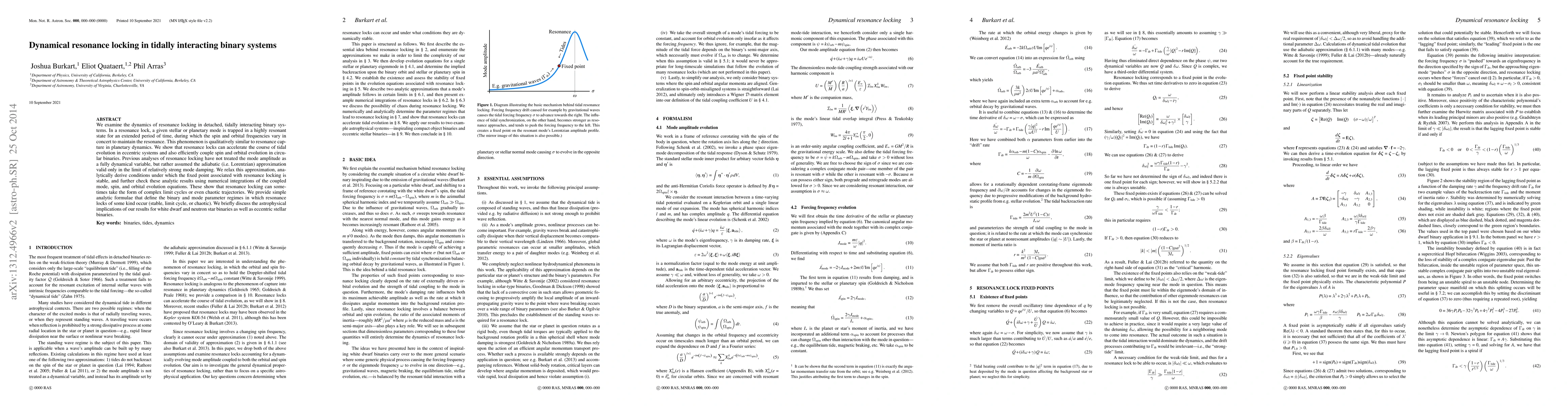 This paper investigates resonance locking in tidally interacting binary systems, demonstrating that it can accelerate tidal evolution and couple spin and orbital dynamics. The authors derive conditions for stable resonance locks, revealing complex behaviors such as limit cycles and chaos, and provide analytic criteria for different types of resonance locks.