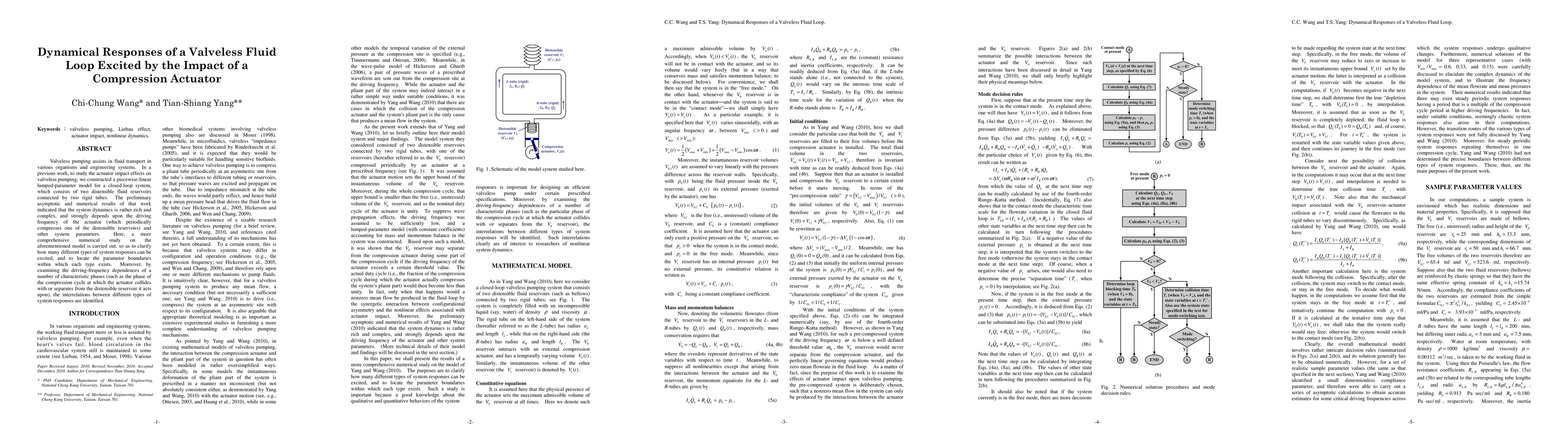 Valveless pumping assists in fluid transport in various organisms and engineering systems. In a previous work, to study the actuator impact effects on valveless pumping, we constructed a piecewise-linear lumped-parameter model for a closed-loop system, which consists of two distensible fluid reservoirs connected by two rigid tubes. The preliminary asymptotic and numerical results of that work indicated that the system dynamics is rather rich and complex, and strongly depends upon the driving frequency of the actuator (which periodically compresses one of the distensible reservoirs) and other system parameters. Here, a more comprehensive numerical study on the aforementioned model is carried out, so as to clarify how many different types of system responses can be excited, and to locate the parameter boundaries within which each type exists. Moreover, by examining the driving-frequency dependences of a number of characteristic phases (such as the phase of the compression cycle at which the actuator collides with or separates from the distensible reservoir it acts upon), the interrelations between different types of system responses are identified.