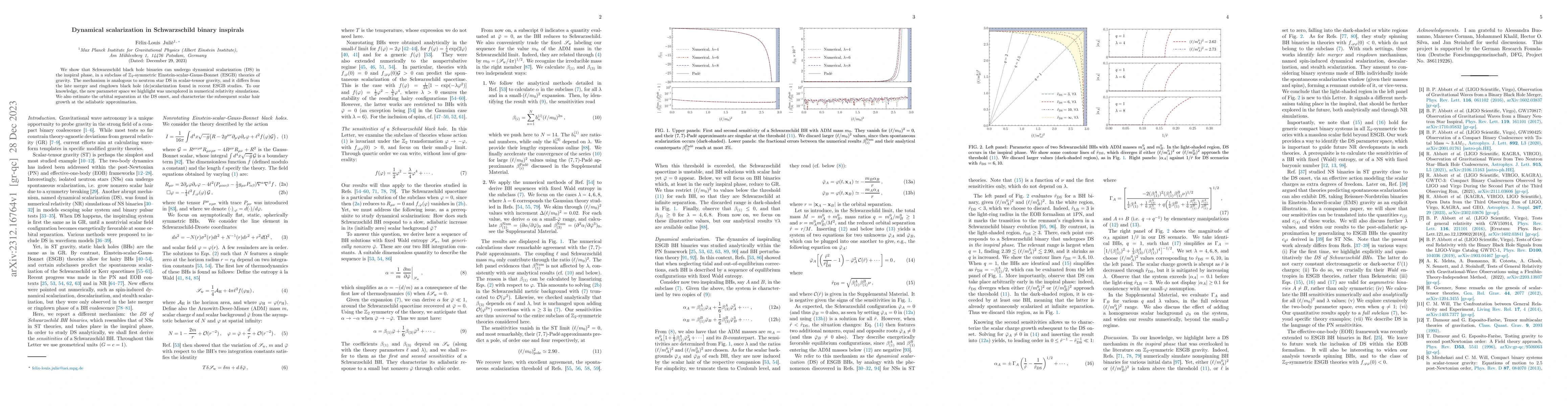 This paper demonstrates that Schwarzschild black hole binaries in $\mathbb{Z}_2$-symmetric Einstein-scalar-Gauss-Bonnet theories can experience dynamical scalarization during the inspiral phase, a phenomenon previously unseen in numerical relativity simulations. The study estimates the orbital separation at the onset of scalarization and characterizes the growth of scalar hair.
