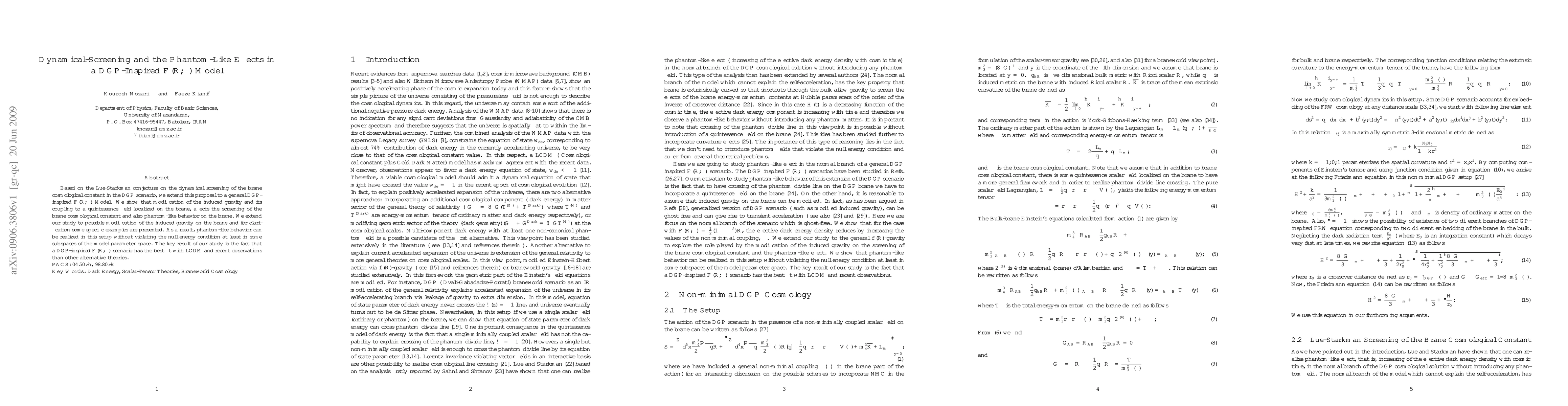This paper explores a DGP-inspired $F(R,\phi)$ model, extending the Lue-Starkman conjecture on dynamical screening to show that modifications in induced gravity and its coupling to a quintessence field can lead to phantom-like behavior on the brane without violating the null energy condition. The study concludes that this model fits observational data better than other alternatives.