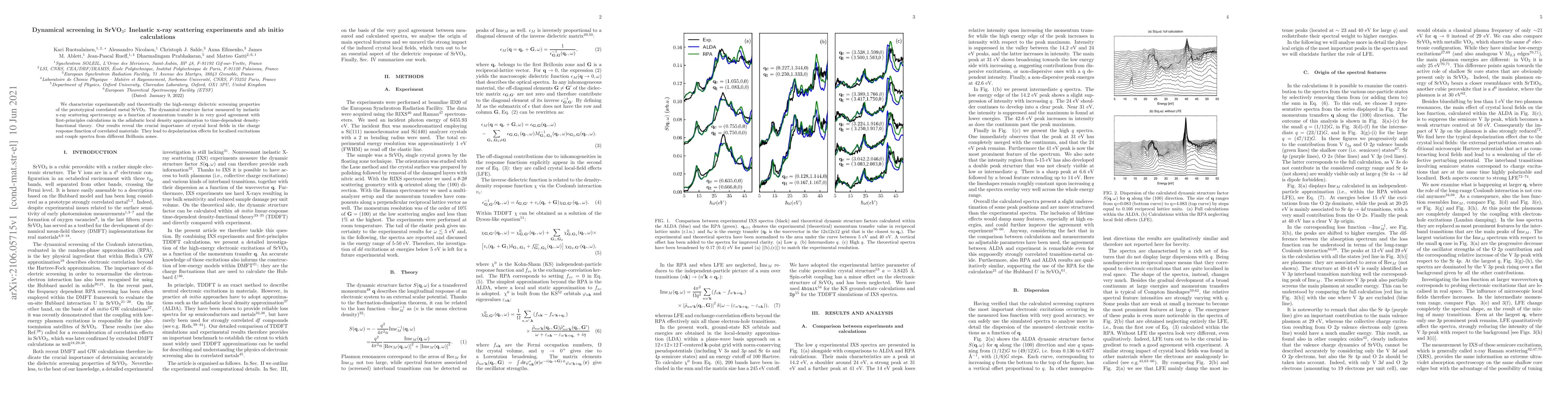 SrVO$_3$'s high-energy dielectric screening is characterized via inelastic x-ray scattering and ab initio calculations, showing strong agreement between experimental and theoretical results. Crystal local fields play a key role in the charge response, leading to depolarization effects and coupling different Brillouin zones.
