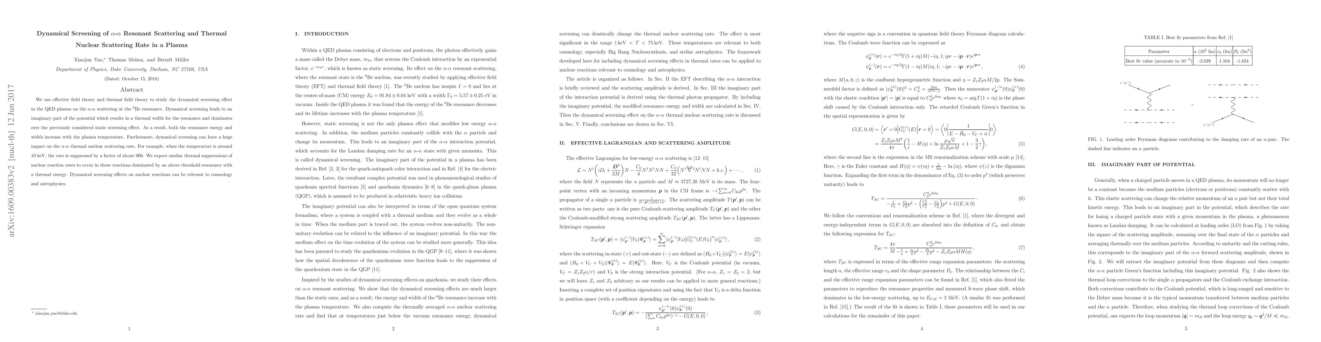 This paper investigates the dynamical screening effect on $\alpha$-$\alpha$ resonant scattering in a QED plasma, showing that it leads to a thermal width for the resonance and significantly suppresses the thermal nuclear scattering rate. At $10$ keV, the scattering rate is reduced by a factor of about $900$, highlighting its relevance to cosmology and astrophysics.