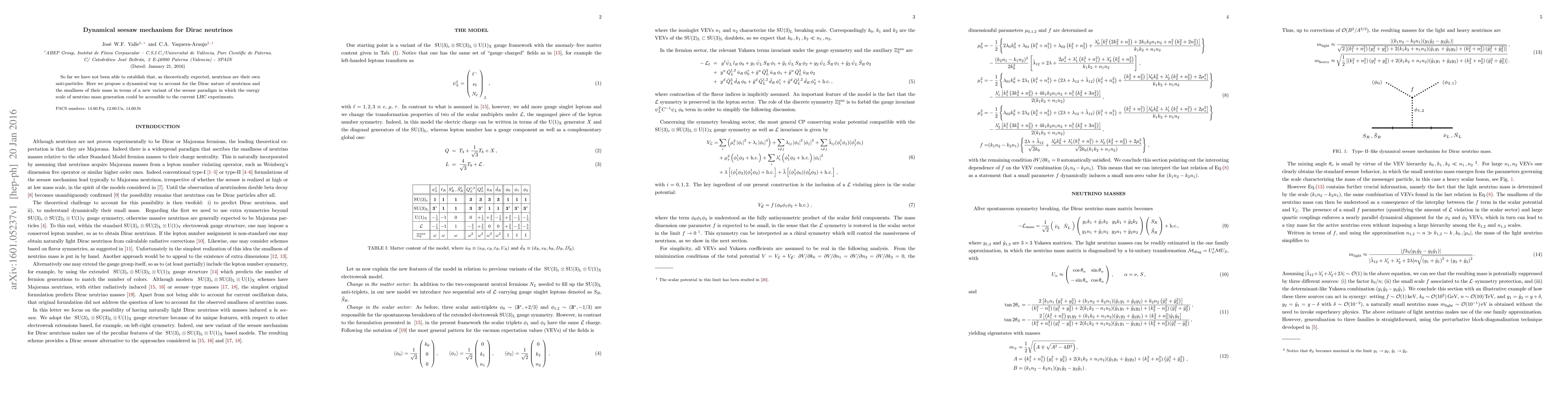 So far we have not been able to establish that, as theoretically expected, neutrinos are their own anti-particles. Here we propose a dynamical way to account for the Dirac nature of neutrinos and the smallness of their mass in terms of a new variant of the seesaw paradigm in which the energy scale of neutrino mass generation could be accessible to the current LHC experiments.