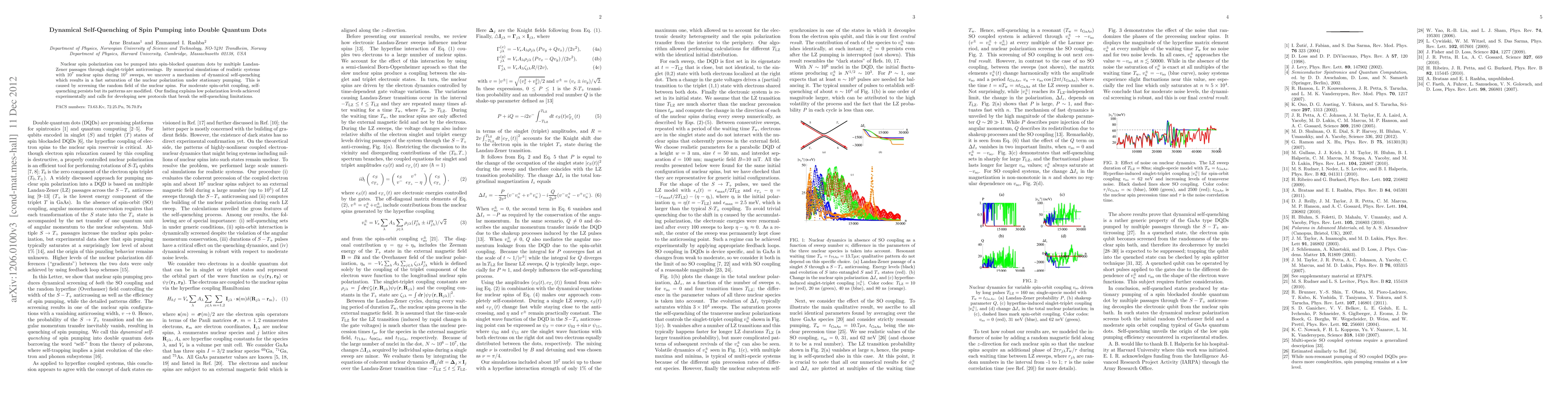 This paper uncovers a dynamical self-quenching mechanism that rapidly saturates nuclear spin polarization in double quantum dots under continuous pumping, due to screening of nuclear spin fields. This effect also limits spin-orbit interactions and calls for new protocols to overcome these limitations.