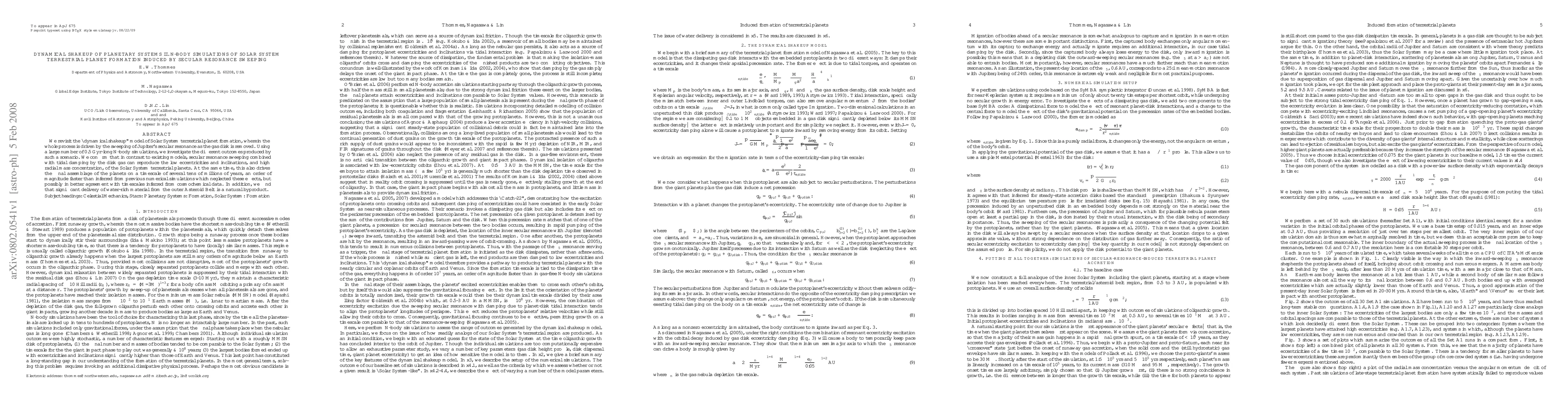 This study explores the "dynamical shakeup" model of terrestrial planet formation in the Solar System, driven by Jupiter's secular resonance sweeping. Through extensive N-body simulations, it shows that this process, aided by tidal damping, can explain the low eccentricities and high mass concentration of terrestrial planets, forming them rapidly while delivering water-rich material from the outer Asteroid Belt.