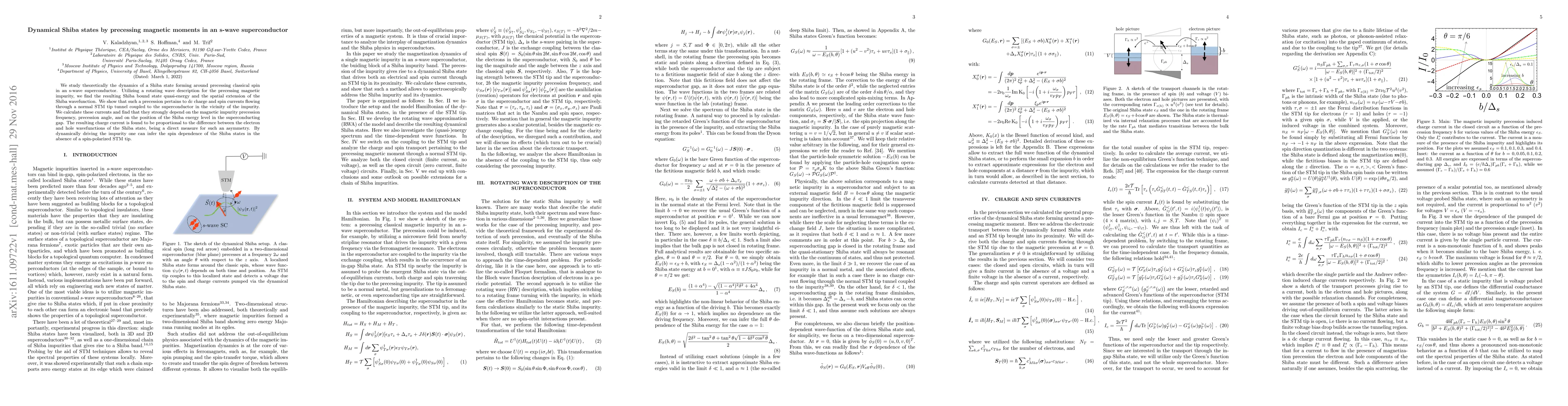 We study theoretically the dynamics of a Shiba state forming around precessing classical spin in an s-wave superconductor. Utilizing a rotating wave description for the precessing magnetic impurity, we find the resulting Shiba bound state quasi-energy and the spatial extension of the Shiba wavefunction. We show that such a precession pertains to dc charge and spin currents flowing through a normal STM tip tunnel coupled to the superconductor in the vicinity of the impurity. We calculate these currents and find that they strongly depend on the magnetic impurity precession frequency, precession angle, and on the position of the Shiba energy level in the superconducting gap. The resulting charge current is found to be proportional to the difference between the electron and hole wavefunctions of the Shiba state, being a direct measure for such an asymmetry. By dynamically driving the impurity one can infer the spin dependence of the Shiba states in the absence of a spin-polarized STM tip