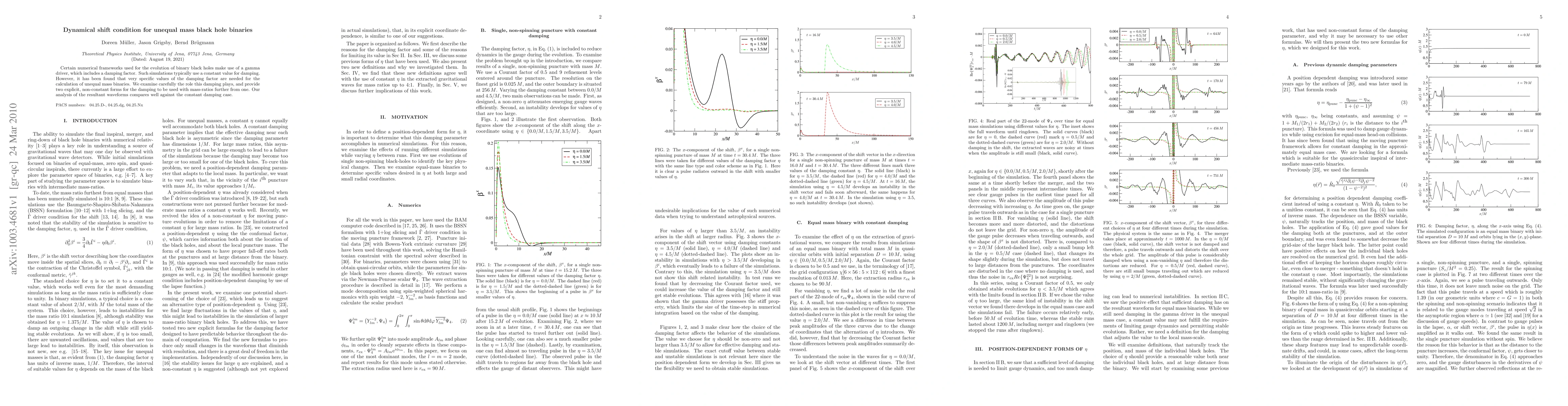 Certain numerical frameworks used for the evolution of binary black holes make use of a gamma driver, which includes a damping factor. Such simulations typically use a constant value for damping. However, it has been found that very specific values of the damping factor are needed for the calculation of unequal mass binaries. We examine carefully the role this damping plays, and provide two explicit, non-constant forms for the damping to be used with mass-ratios further from one. Our analysis of the resultant waveforms compares well against the constant damping case.