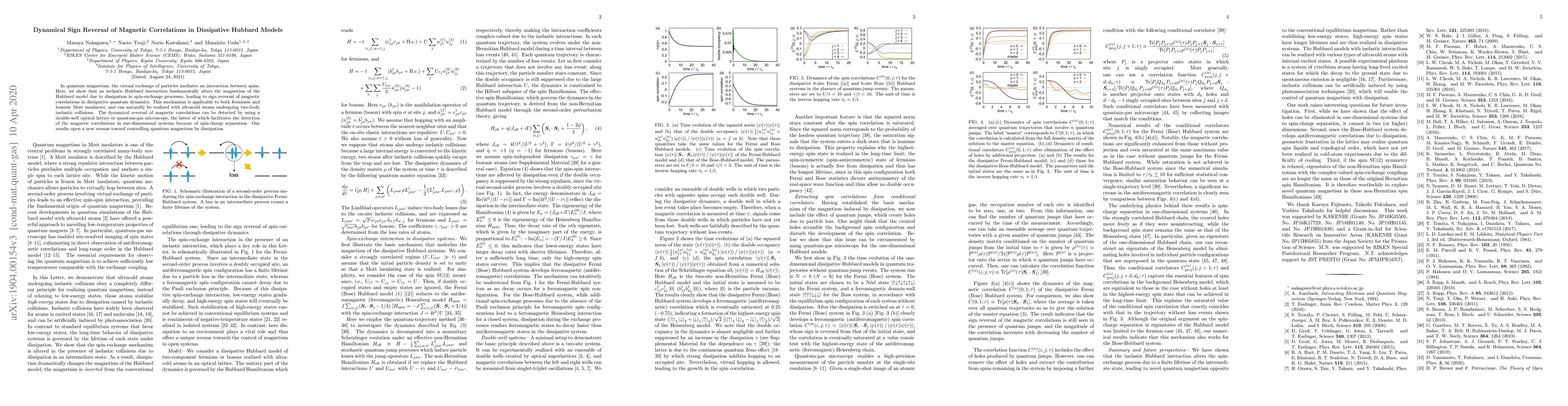 In quantum magnetism, the virtual exchange of particles mediates an interaction between spins. Here, we show that an inelastic Hubbard interaction fundamentally alters the magnetism of the Hubbard model due to dissipation in spin-exchange processes, leading to sign reversal of magnetic correlations in dissipative quantum dynamics. This mechanism is applicable to both fermionic and bosonic Mott insulators, and can naturally be realized with ultracold atoms undergoing two-body inelastic collisions. The dynamical reversal of magnetic correlations can be detected by using a double-well optical lattice or quantum-gas microscopy, the latter of which facilitates the detection of the magnetic correlations in one-dimensional systems because of spin-charge separation. Our results open a new avenue toward controlling quantum magnetism by dissipation.