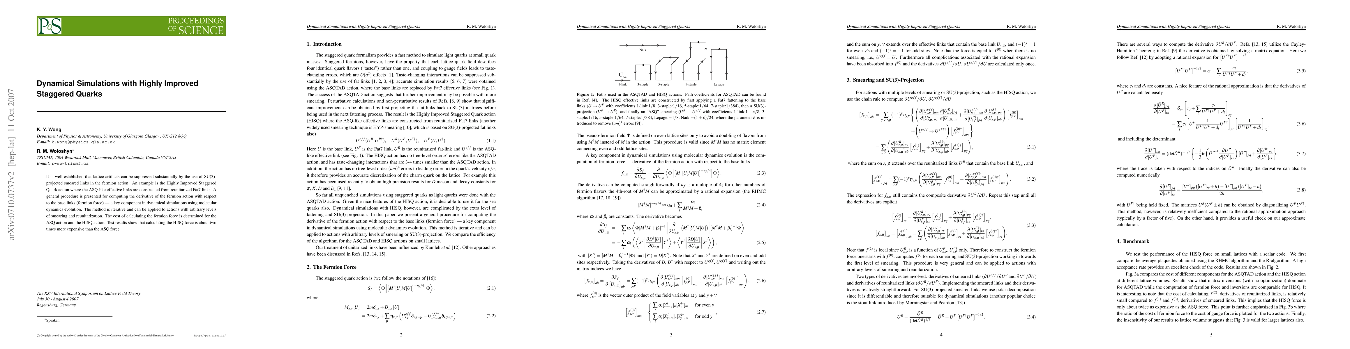 It is well established that lattice artifacts can be suppressed substantially by the use of SU(3)-projected smeared links in the fermion action. An example is the Highly Improved Staggered Quark action where the ASQ-like effective links are constructed from reunitarized Fat7 links. A general procedure is presented for computing the derivative of the fermion action with respect to the base links (fermion force) - a key component in dynamical simulations using molecular dynamics evolution. The method is iterative and can be applied to actions with arbitrary levels of smearing and reunitarization. The cost of calculating the fermion force is determined for the ASQ action and the HISQ action. Test results show that calculating the HISQ force is about two times more expensive than the ASQ force.