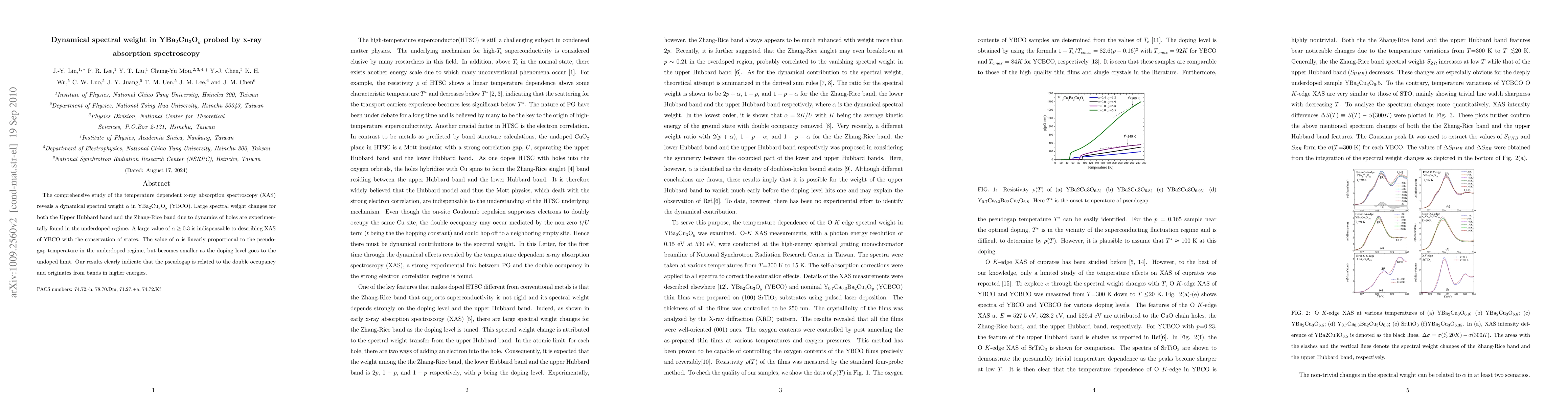 The comprehensive study of the temperature dependent x-ray absorption spectroscopy (XAS) reveals a dynamical spectral weight $\alpha$ in YBa$_2$Cu$_3$O$_y$ (YBCO). Large spectral weight changes for both the Upper Hubbard band and the Zhang-Rice band due to dynamics of holes are experimentally found in the underdoped regime. A large value of $\alpha \geq 0.3$ is indispensable to describing XAS of YBCO with the conservation of states. The value of $\alpha$ is linearly proportional to the pseudogap temperature in the underdoped regime, but becomes smaller as the doping level goes to the undoped limit. Our results clearly indicate that the pseudogap is related to the double occupancy and originates from bands in higher energies.